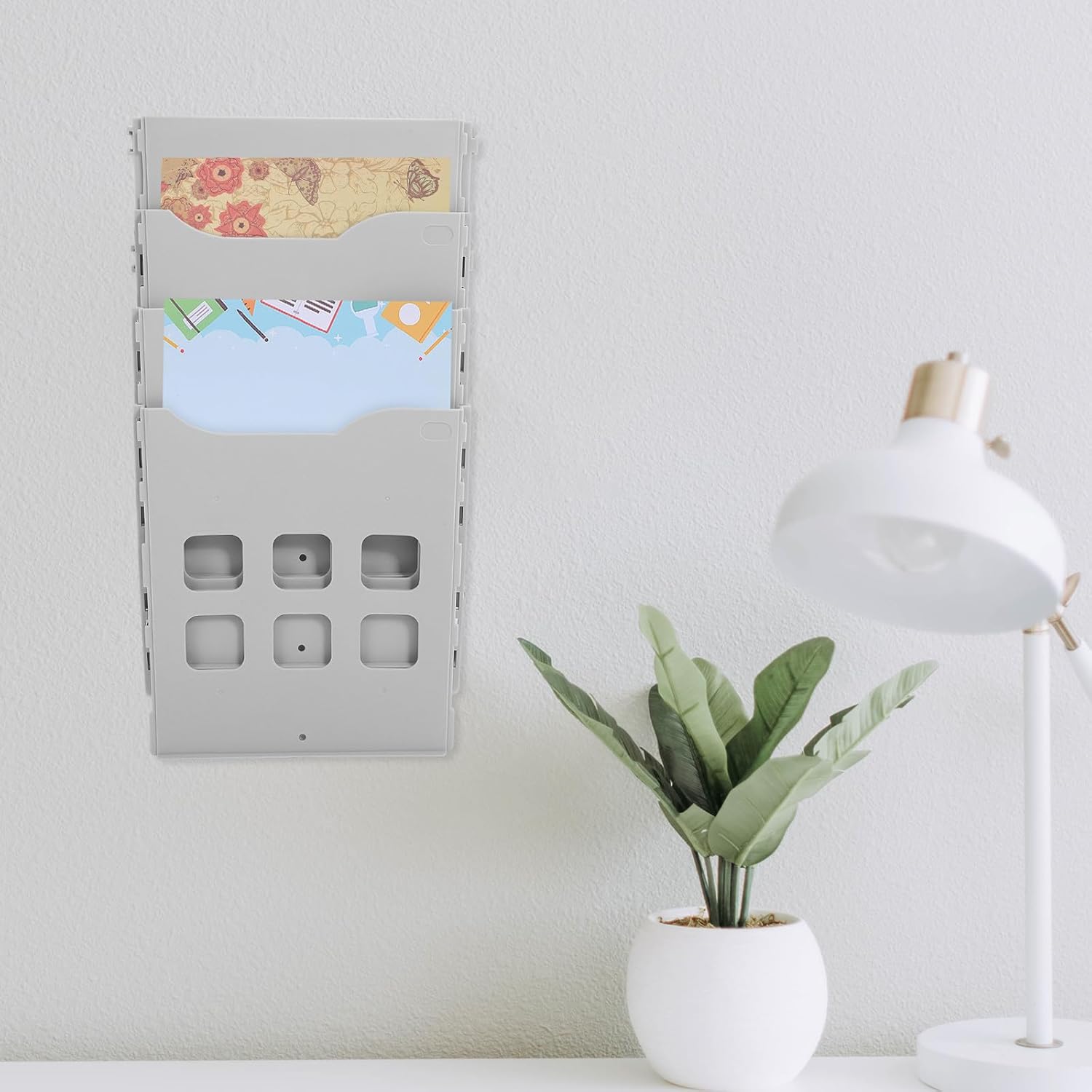 Package Include 1 x File Holder Features -Note:Come with nail free screw patch document display rack. -Product Info:File rack Information rack -Color:White -Material:Plastic -Size: 45.00X25.00X9.50cm/17.68X9.82X3.73in -Not only is this product functional and practical, but it also adds a stylish touch to any space, making it a great choice for those who want to combine wall document holder. -This storage holder is highly versatile and can be used in a variety of settings, from offices to homes to classrooms office document rack. -With flexible storage options, this product can accommodate files of different sizes and types, making it a great choice for organizing a wide range of materials. -Made from plastic materials, this storage holder is built to last and provides reliable and storage for all your important documents and materials. -Wall hanging design, this storage holder can be installed quickly and easily, without the need for any special tools or equipment paper rack.Goods Informationoffice file rack Versatility meets durability with the Multi-functional Card Holder File Rack.office document rack Whether you need to organize your office, school, or home, this file rack is up to the task.wall folder holder This file rack is not only functional but also stylish, adding a touch of sophistication to any space.wall mounting file holder Its multi-layer design allows for flexible storage options, accommodating different sizes and types of files