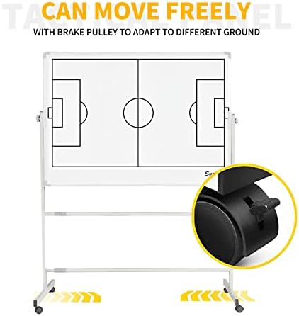 Introducing the versatile Magnetic Football Tactics Board, an essential tool for soccer coaches looking to enhance their game strategy and team communication. This tactical board is perfect for outlining formations, set pieces, and matchday tactics, allowing coaches to effectively convey their game plans to players. Say goodbye to the hassle of kneeling in circles during discussions—our board provides a clear, unobstructed view for all team members, making it easier for everyone to grasp complex strategies. The double-sided feature includes a full-field view on one side and ample space for annotations on the other, ensuring that you can customize your coaching approach for every match. Designed with practicality in mind, the Magnetic Football Tactics Board comes equipped with 360° rotatable wheels, making it easy to transport between training sessions and match venues. Whether you're coaching soccer, basketball, or futsal, this board is an invaluable addition to your training equipment. Specifications: - Name: Soccer Coaching Board / Basketball Coaching Board - Material: Durable aluminum alloy frame and sturdy iron bracket - Dimensions: Board size 120cm x 90cm - Total Weight: Approximately 12kg Package Includes: - 1 x Tactics Board - 1 x Stand - A set of magnets - 1 x Writing pen - 1 x Dry eraser Please note: There may be a slight variance of 1-3cm in measurements due to manual measurement. Always verify specifications and dimensions prior to purchase. Elevate your coaching experience with the Magnetic Football Tactics Board and make your game planning more effective and engaging for your team.