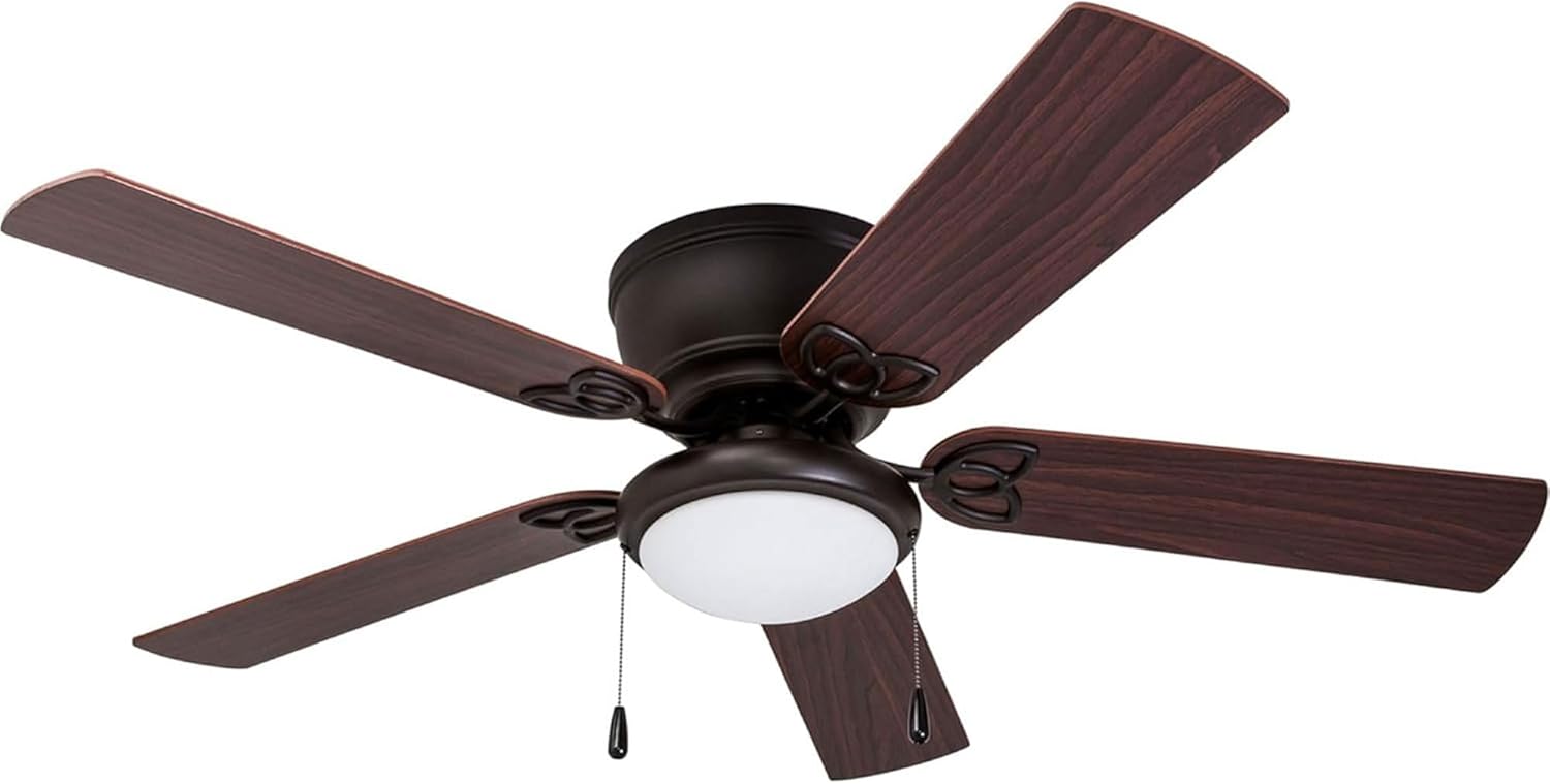 The Benton dry-rated traditional ceiling fan with light combines stylish details with old world influences for a truly inspiring fixture for your home. Its classic hardware, frosted glass, and dimmable LED lighting accompany an innovative 5-blade design that provides adjustable, energy-efficient airflow. Control your Prominence Home large ceiling fan with lights with two easy-to-use pull chains. For year-round comfort, change the direction of this modern ceiling fan with light to reverse airflow. During summer, this ceiling light with fan provides a cooling effect, and throughout winter, our strong fan can reverse to spread warm air, helping reduce energy costs. This gorgeous light bulb fan blends with many decor styles. When paired with your decor, this classic ceiling fan can transform into a mid-century modern ceiling fan, modern farmhouse ceiling fan, or the vintage ceiling fan with light you've been seeking. The ceiling fan light provides 800 lumens and 3000k color temperature. Whether you need room fans for bedrooms, a home office fan, or living room ceiling fan, this white ceiling fan with light has you covered.
