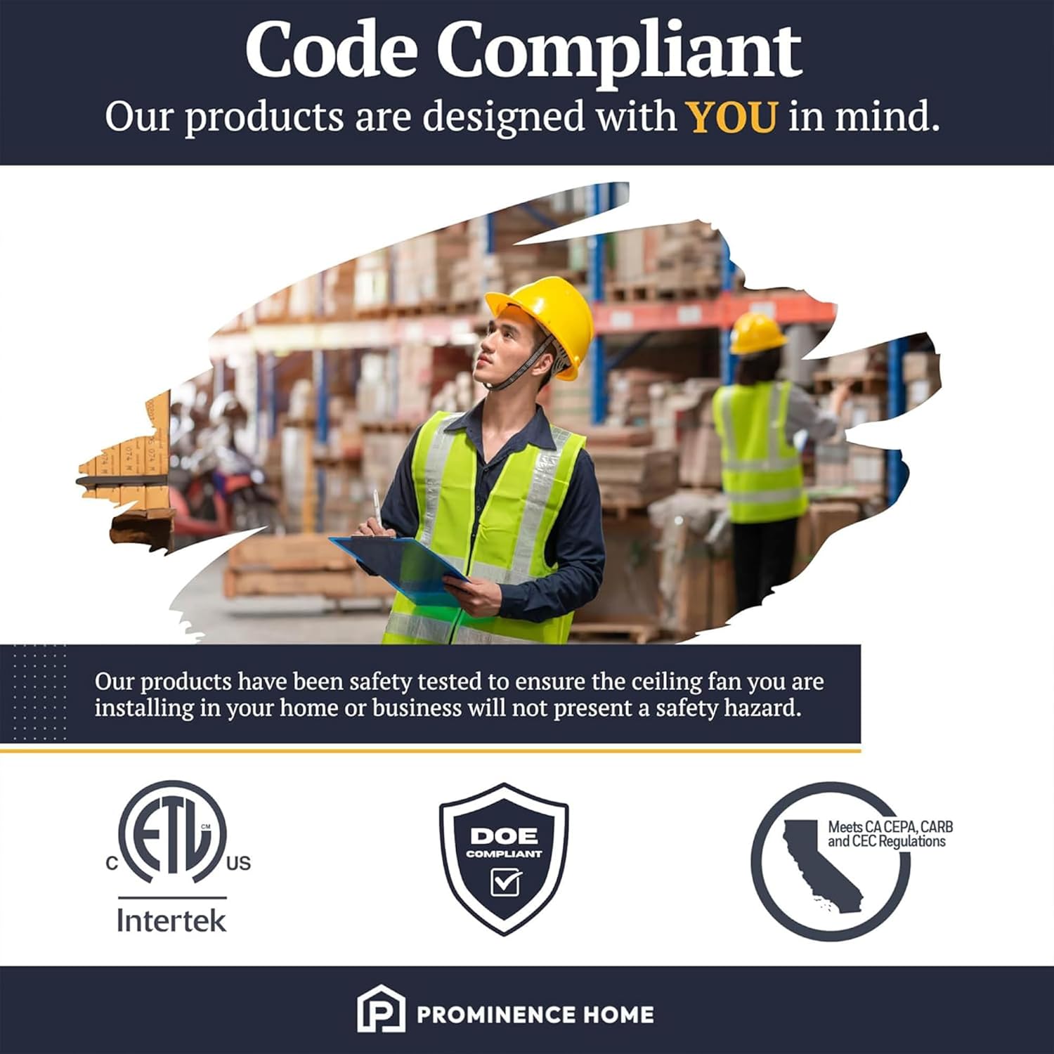 Product Description The Saybrook dry-rated modern farmhouse ceiling fan with light combines stylish details with modern influences for a truly inspiring fixture for your home. Its bold hardware, modern clear glass and Edison-style dimmable LED lighting accompany an innovative 5-blade design that provides adjustable, energy-efficient airflow. Control your Prominence Home large ceiling fan with lights with two easy-to-use pull chains. For year-round comfort, change the direction of this modern ceiling fan with light to reverse airflow. During summer, this ceiling light with fan provides a cooling effect, and throughout winter, our strong fan can reverse to spread warm air, helping reduce energy costs. This gorgeous light bulb fan blends with many decor styles. When paired with your decor, this farmhouse ceiling fan can transform into a mid-century modern ceiling fan, boho vintage ceiling fan, or the industrial ceiling fan with light you've been seeking. The LED Edison bulbs provide 2400 lumens and 2700k color temperature. Whether you need room fans for bedrooms, a home office fan, or living room ceiling fan, this ceiling fan with light has you covered. Manufacturer Contact Information Website; prominencehome.com Customer Service; (877) 217-4481