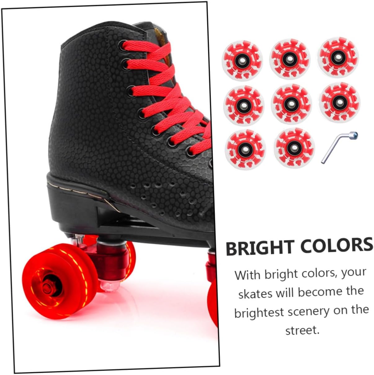 Package List 8 1 x wrench Characteristics - Size: 5.40X5.40X3.20cm/2.12X2.12X1.26inch Skates Accessories. -Product Info:Roller skateboard wheels - Material: PU Double-row Wheels. - Replace a roller skate or skateboard wheel for an old or broken one roller skate accessories. - It adopts premium PU material for practical and durable use Skating Wheel. - Easy to install, highly resistant to wear and not easy to break glow wheels for roller skates. - With a design, your skates will be eye-catching on the street at skate wheel. - Work well with both flat roads and ramps. Suitable for beginners and professionals lighted Roller Wheels.Goods Descriptionroller skate wheels Are you looking for a professional, yet roller skate wheel? Are you in search of a trustworthy tool that can do multiple jobs at once? , ! Our roller skate wheel must meet your needs.Roller Skates Accessories It is one of the for you