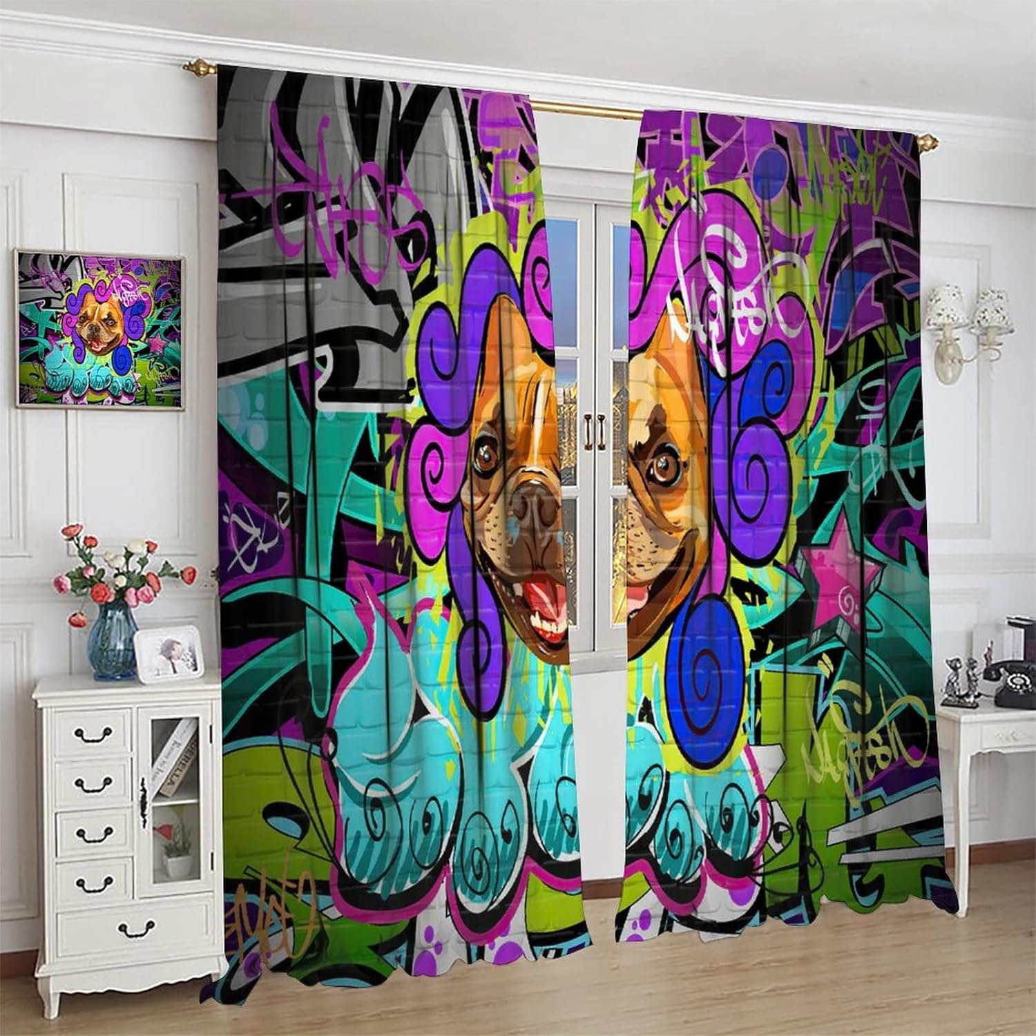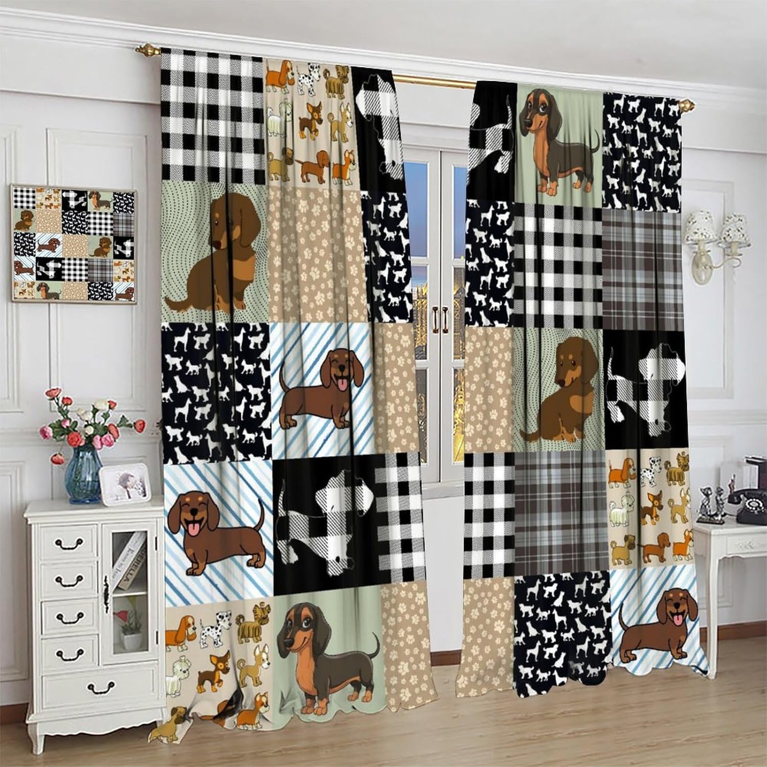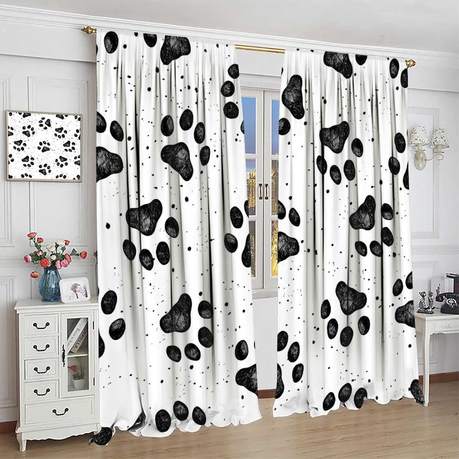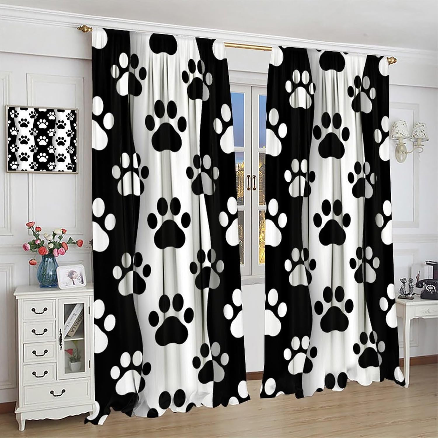 Package included:2 panels per package.Size:One panel measures 21" (W) x 45" (L). The overall size is 42"(W) x 45"(L).One panel piece measures 21" (W) x 54" (L). The overall size is 42"(W) x 54"(L).One panel piece measures 21" (W) x 63" (L). The overall size is 42"(W) x 63"(L).One panel piece measures 27.5" (W) x 63" (L). The overall size is 55" ( W ) x 63" ( L ).One panel piece measures 26" (W) x 84" (L). The overall size is 52" (W) x 84" (L).One panel piece measures 31.5" (W) x 63" (L). The overall size is 63" (W) x 63" (L).One panel piece measures 36" (W) x 63" (L). The overall size is 72" (W) x 63" (L).One panel piece measures 31.5" (W) x 72" (L). The overall size is 63" (w) x 72" (L).One panel piece measures 42" (W) x 84" (L). , The overall size is 84" (W) x 84" (L).About the material:1. Made of fiber polyester fabric.2. High color fastness, no fading even after long term use.3. No chemical coating, no odor, healthier and safer for people, especially for babies and children.About the function.1. It can block out 70%-90% of light and can protect privacy by blocking light or darkening the room.2. It is very suitable for bedroom, living room, kitchen, cafe, office, closet, door, bathroom, dining room, dormitory, nursery, outdoor patio, etc.3. It is also one of the best gifts for family, friends, relatives or yourself.Warm tips:1. Machine washable in cold water.2. The pattern is only on one side, the other side is white.3. Due to manual measurement, please allow 1-2 cm difference.Our service:We focus on 100% customer satisfaction. If you have any questions or problems, please contact us by email, we will reply within 24 hours and provide a satisfactory solution.