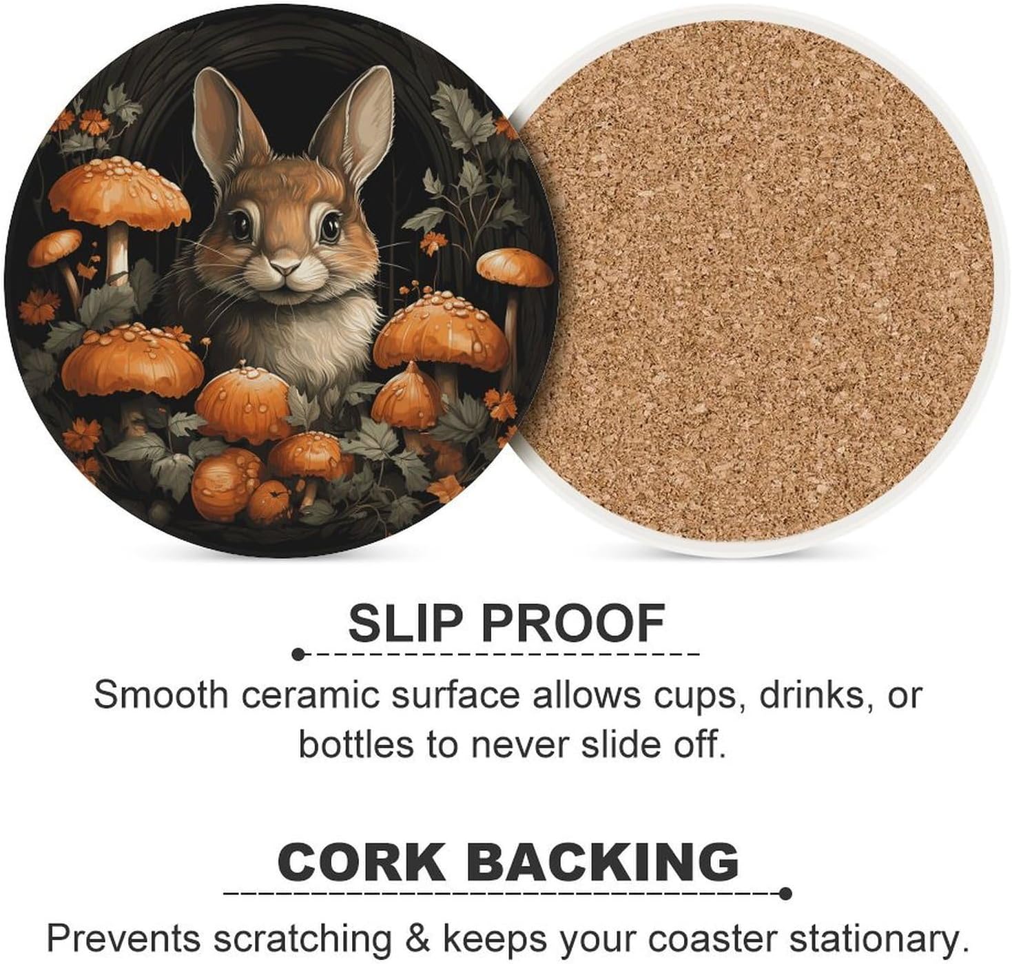 Transform your everyday drinkware experience with our Personality Round Mug Mat set, designed to blend functionality with eye-catching style. Whether you're sipping morning coffee, afternoon tea, or a relaxing evening drink, these Drink Coasters for Drinks offer the perfect balance of protection and aesthetics. The ceramic surface handles hot and cold beverages alike, while the cork backing ensures your favorite tables and countertops stay free from scratches, rings, and moisture. Available in 4PCS or 6PCS packs, these coasters are tailored to fit your daily use, whether for personal use or entertaining guests.Say goodbye to messy spills and slippery cups with our Waterproof Coasters and Anti-slip Drink Cup Mat combination. The smooth ceramic top is not only easy to wipe clean but also resists water absorption, ensuring spills don’t leave lasting marks. At 4.1 inches in diameter, each Round Ceramic Drink Coaster is sized to fit most standard mugs, glasses, and cups, making it a versatile addition to any home or office. Whether you're hosting a casual gathering or setting up a cozy workspace, these coasters keep your surfaces protected while adding a subtle, stylish touch to your decor.Elevate your space with our Fashion Coasters that double as charming coffee table decor. These Cute Drink Coasters feature a sleek round design that complements any interior style,Perfect for your kitchen, living room, bedroom, office, or bar, they make a thoughtful gift for friends, family, or colleagues who appreciate both practicality and style. Don’t settle for basic coasters—upgrade to our Heat Insulation Round Cup Mat set and enjoy a cleaner, more organized, and aesthetically pleasing environment with every sip.