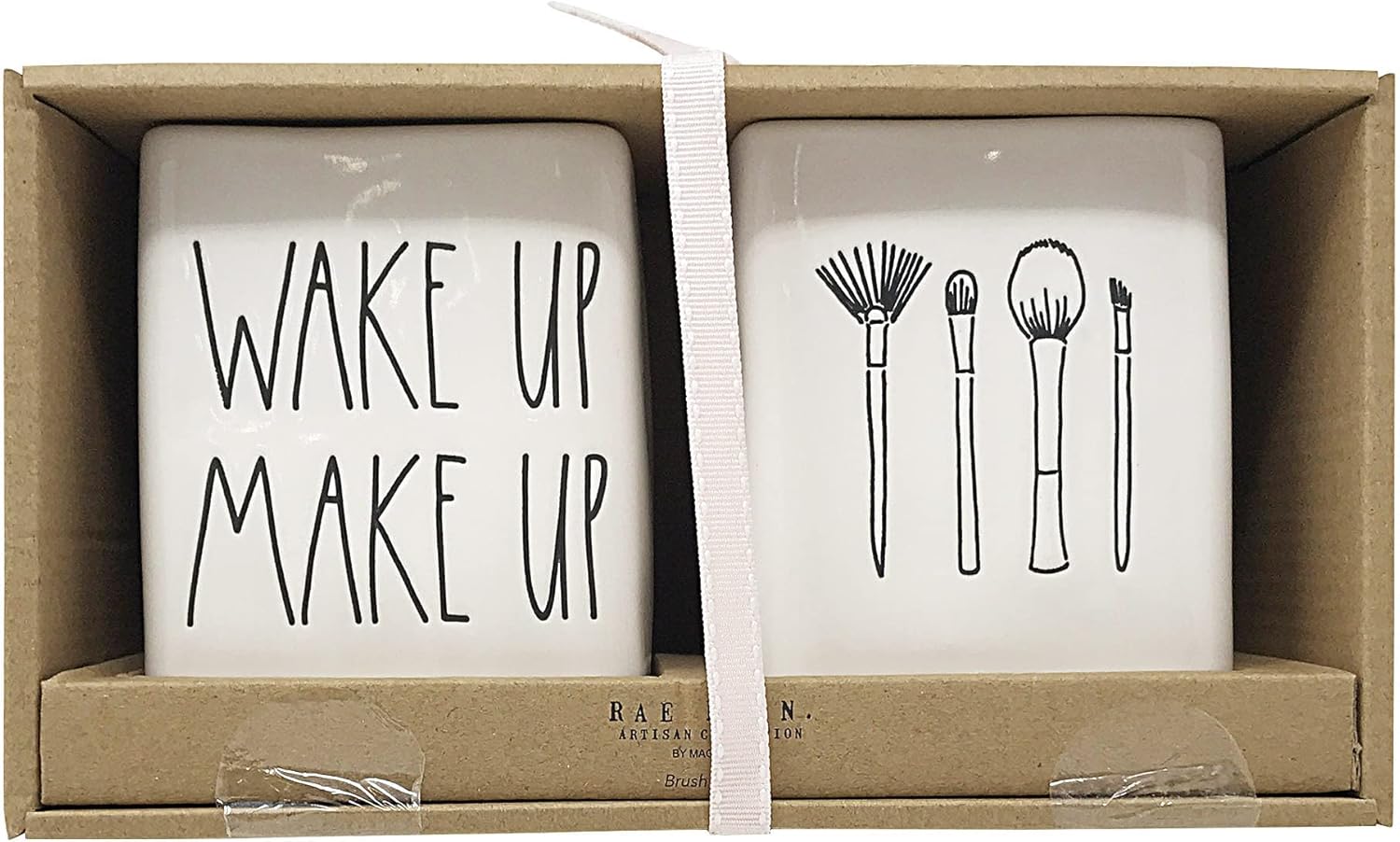 Rae Dunn MAKE UP WAKE UP Ceramic Brush Cup Holder