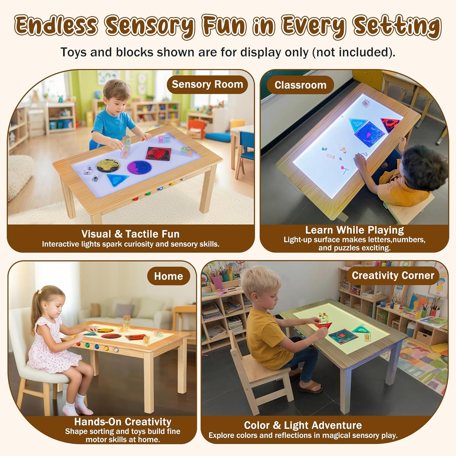 | Assembly Instructions Description | The product includes an assembly guide and installation tool for setting up the sensory light table. |