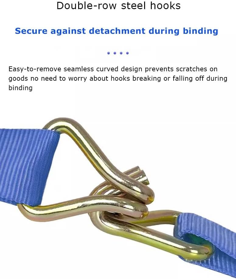Our knows the straps securing your cargo must remain strong and secure for years. Our ratchet straps are made from rock solid materials The ratcheting mechamsim makes tightening these straps effortless and simple.Product SpecificationsProduct Name: Ratchet StrapsAvailable widths: W3.8cm/1.5in, W5cm/1.96inAvailable Length:L3m/118in , L4m/157in , L5m/196in , L6m/236in , L8m/314in , L9m/354in , L10m/393in , L15cm/590inMaterial:Metal, PolyesterNote: All measurements are taken manually and there may be an error of,approximately 1-3cm Please consider this before purchasingHow to Tighten Strap: 1. Pass the strap under the tensioner rotating shaft; 2. Pass the strap through the center slot of the tensioner rotating shaft; 3. Pull the tensioner handle back and forthHow to Release Strap: 1. Fasten the safety plate outwards; 2. Open the tensioner to level; 3. Pull out the strap