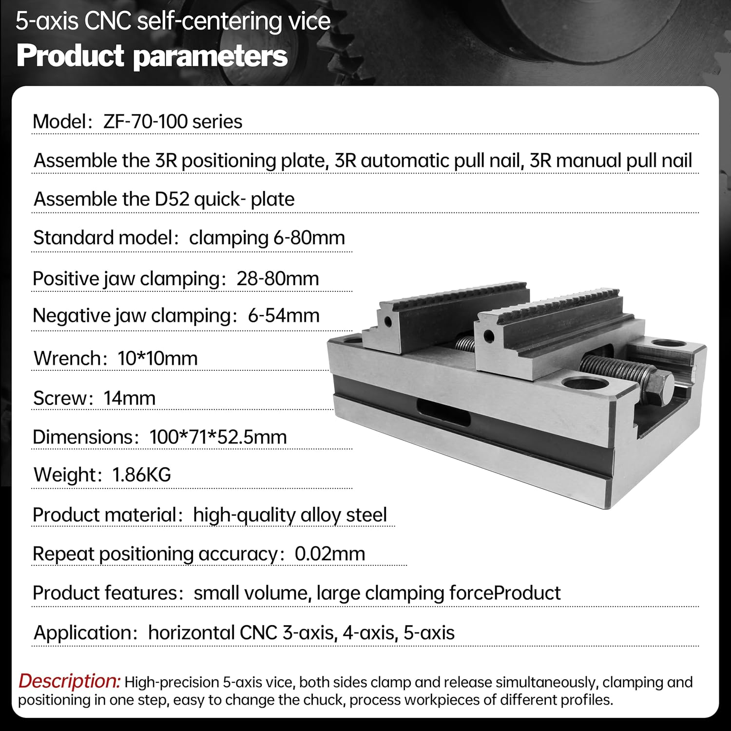 | Included Components | CNC Parts 5-Axis Self-Centering Vise for 3/4/5 Axis CNC Machining |