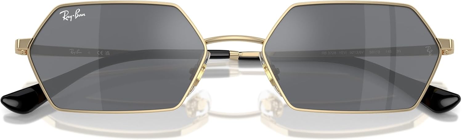 The edgy geometric 0RB3728 Yevi introduces a new music festival look to the Gen Z collection. Synonymous with music culture, these metal frames come with bio-nylon lenses. The hexagonal lens shape has a feel-good vibe perfect for the free spirits of every generation. Adjustable nose pads. 100% UV protection coating. Non-polarized. Plastic lens. Signature logo engraving.