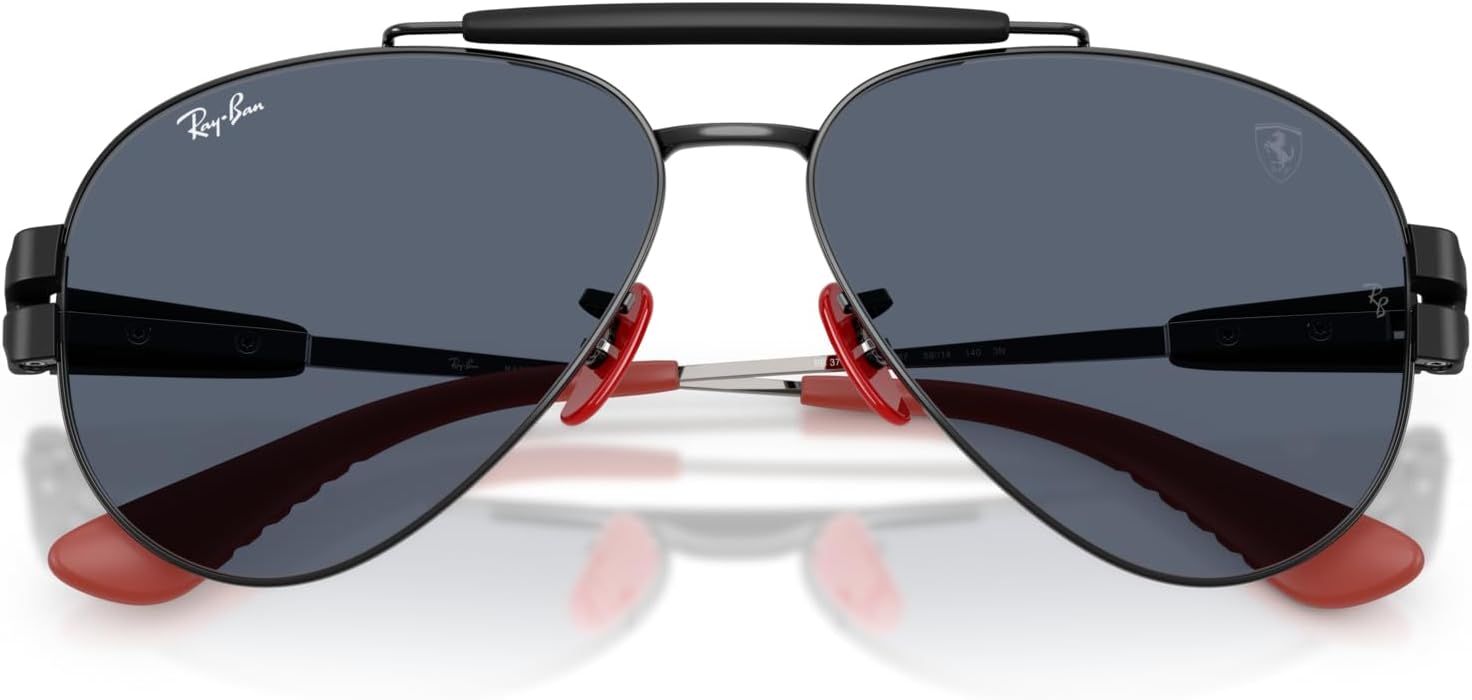 Ray-Ban's iconic aviator gets an F1 make over in the sleek new RB3762M Scuderia Ferrari Collection. Featuring a metal front, carbon fiber temples and bold browbar, this legendary style is infused with dynamic Scuderia Ferrari energy. Ray-Ban sunglasses sold by authorized sellers, like Amazon, are eligible for all manufacturer warranties and guarantees. Click on the Ray-Ban link above the product title to shop the entire Ray-Ban sunglass and eyeglass assortment.