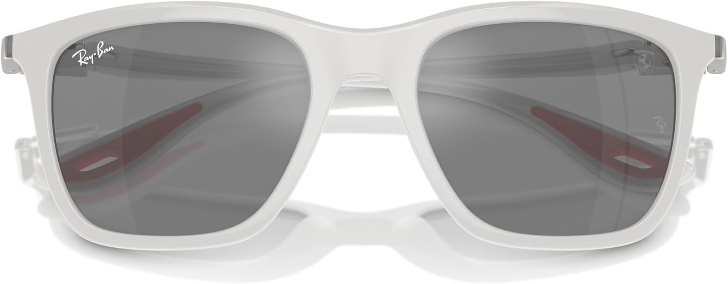 With an oversized square shape, RB4433M Scuderia Ferrari Collection has been updated with an exclusive temple design inspired by racing cars with silver details engraved with the iconic Ray-Ban logo. Featuring Scuderia Ferrari details, this frame is available in black, grey and white colorways with recall to the colors of racing tracks. Available with solid, gradient, mirrored or Chromance lenses. Ray-Ban sunglasses sold by authorized sellers, like Amazon, are eligible for all manufacturer warranties and guarantees. Click on the Ray-Ban link above the product title to shop the entire Ray-Ban sunglass and eyeglass assortment.