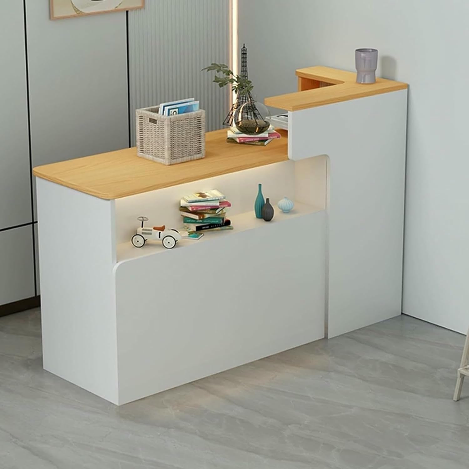 This counter table is stylish and beautiful, combining simple and fashionable lines to ignite your passion for life.Reception counter desk LED ambient lighting designAdd a little color difference and atmosphere to the space, giving you a different visual experience.Retail checkout counter has abundant space to meet your different storage needs, wide desktop with top hutch offer additional storage space.Specifications:Product name: small reception desk,Material: woodColor: Wood color, White, Gray,Natural Style: left, rightStyle: modern and simpleLength: 80cm/31.5in, 100cm/39.3in, 120cm/47.2inWidth: 50cm/19.6inHeight: 100cm/39.3inApplicable scenarios: clothing stores, beauty salons, etc.Package Includes:1 x Cashier Counter.Attention.1. Due to monitor differences, there may be slight color difference.2. Due to the measurement method, measurement method and other factors, there may be a slight error.