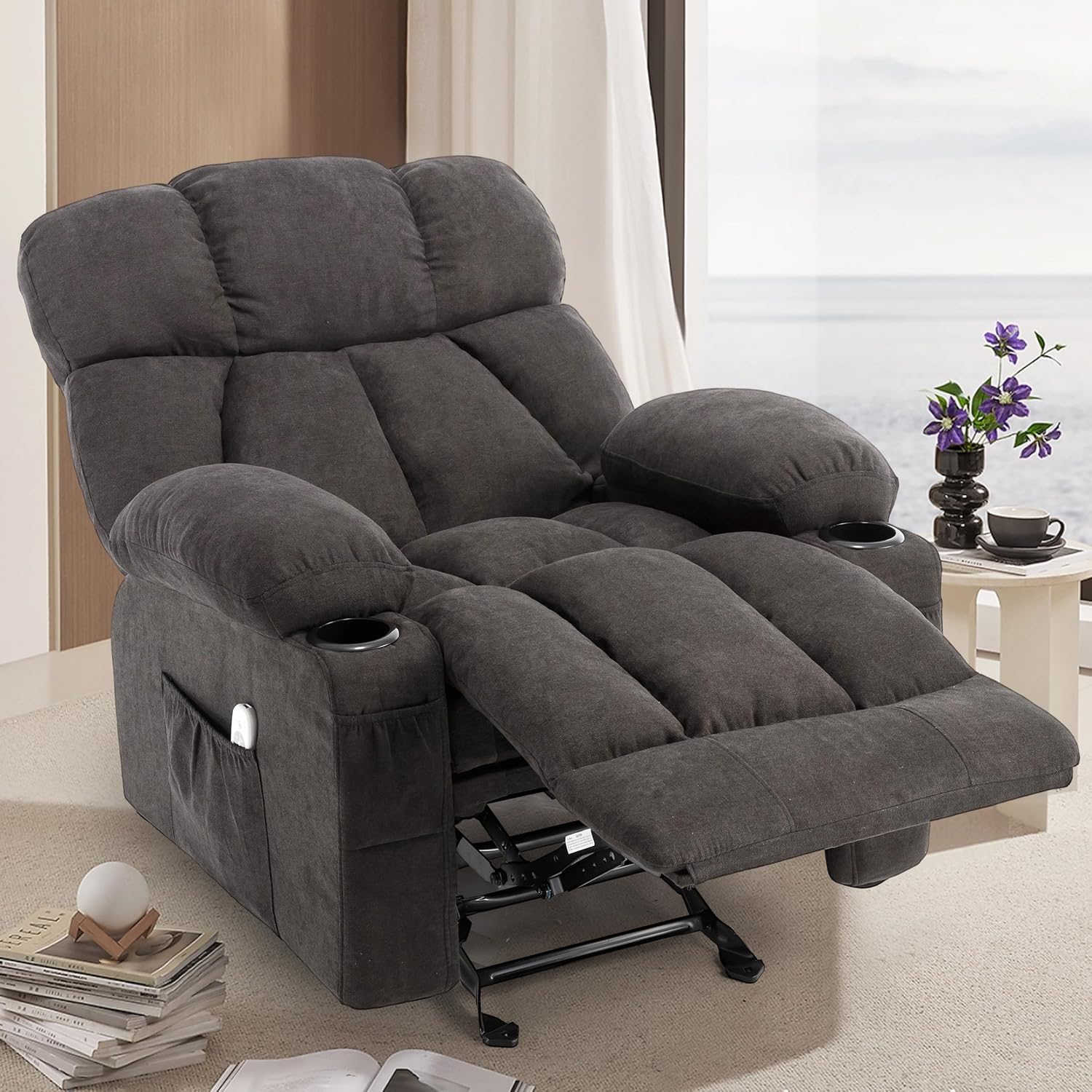 Recliner Chair with Massage Rocker Heat, Ergonomic Oversized Reclining Lounge Chair with Side Pockets, USB Charging Port, Sturdy Metal Frame, Overstuffed Nursery Rocking Chairs for Living Room