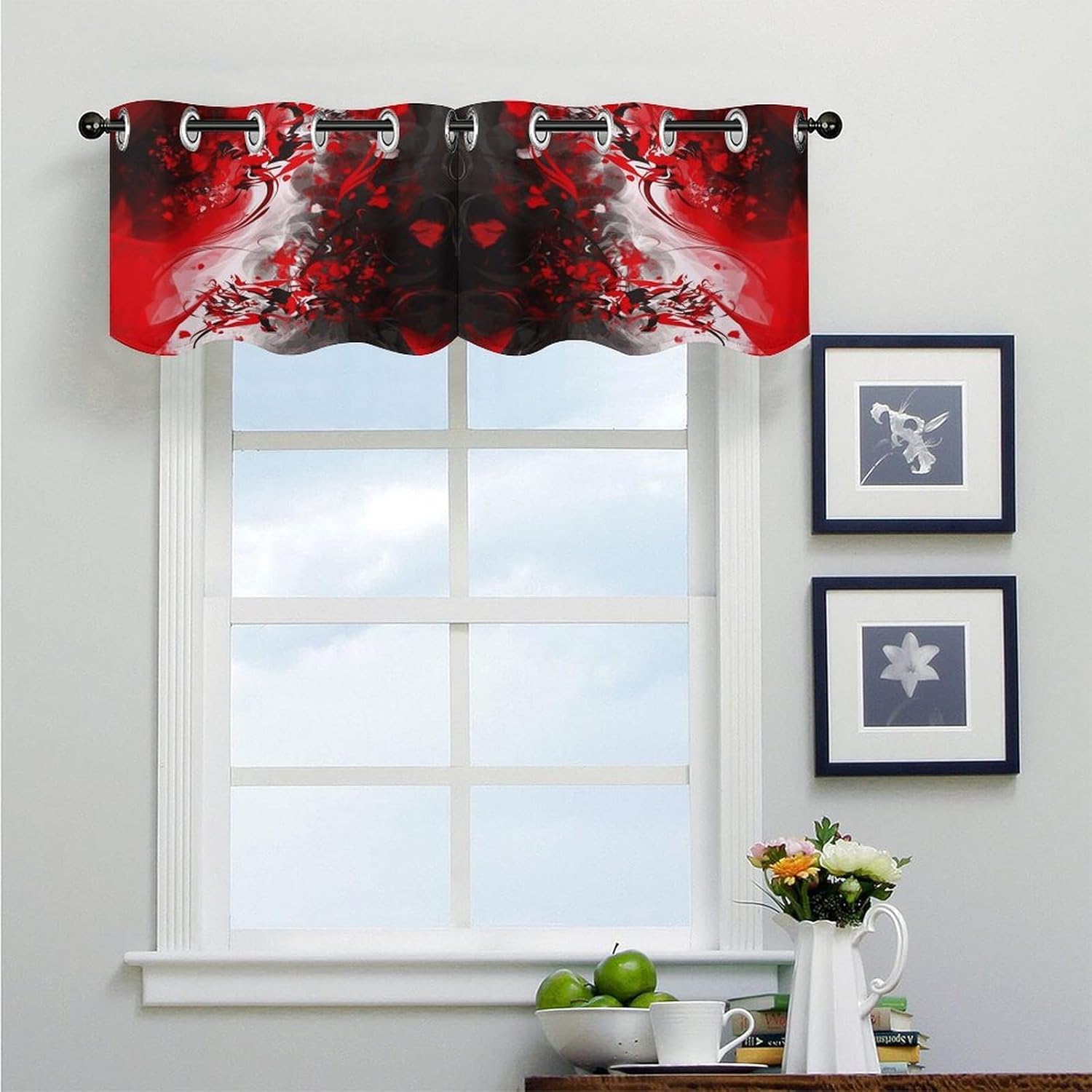 Perfect Pair Printed Curtain - Red Black White Abstract Light Filtering Modern Window Décor Elevate your windows with our beautifully designed two-piece Red Black White Abstract curtain set, combining a functional printed curtain with an elegant coordinating valance. Crafted for versatility, this Red Black White AbstractCurtain is the ideal solution for adding privacy, style, and controlled light to any room. Premium Fabric & Modern Design: Crafted from premium fabric, this Red Black White Abstract Curtain maintains a soft hand-feel and a graceful drape over time. The elegant print and smooth texture provide a sophisticated look that enhances your home's ambiance. Optimal Light Filtering & Protection: This Red Black White Abstract modern curtain effectively filters harsh sunlight, creating a softly illuminated and comfortable atmosphere. It helps protect your furniture and flooring from UV damage while providing a good level of privacy. The fabric is resilient and designed for easy care. Versatile Application: This Red Black White Abstract ready-to-hang Curtain is designed for broad compatibility. The curtain features standard 4.5cm grommets for smooth gliding on most curtain rods. With dimensions of 52" W x 18.1" H per panel, it's perfectly suited for various window styles. Ideal as a charming kitchen curtain or cafe curtain for bottom-up coverage, it also functions perfectly as a tier curtain. Whether you're looking for a stylish printed curtain for your living space, a functional light filtering curtain for a bedroom, or a complete look with a curtain valance, this Red Black White Abstract set delivers both style and purpose. Set Includes: Two printed curtain panels Bring a cohesive and stylish upgrade to your home with this Red Black White Abstract versatile curtain .