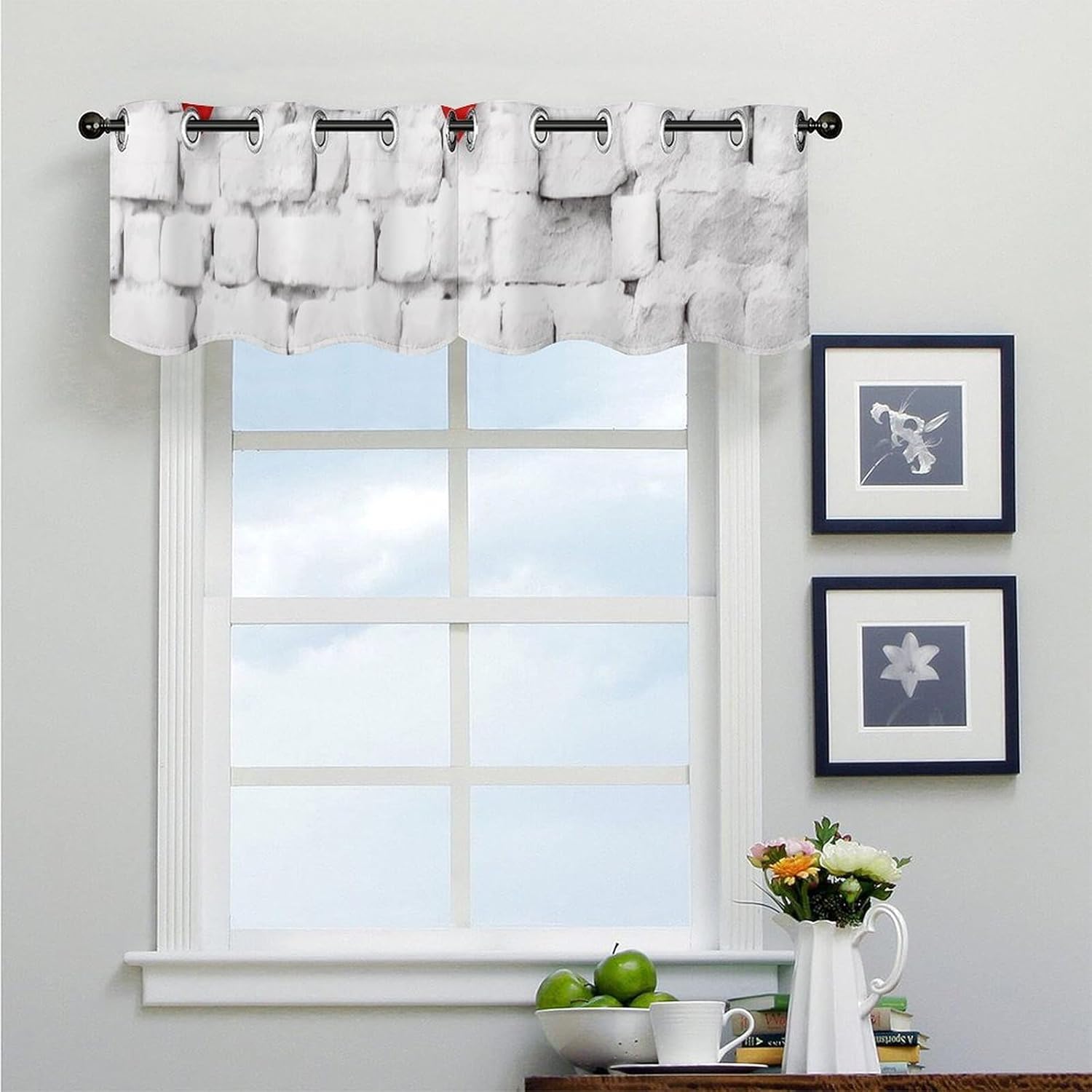 • STYLISH HOME FASHION: These Red Hearts on White Brick Wall thermal insualted valances are unlined, just fine weight make the hand feeling ultimate soft, silky, smooth, while still have great draped effect.