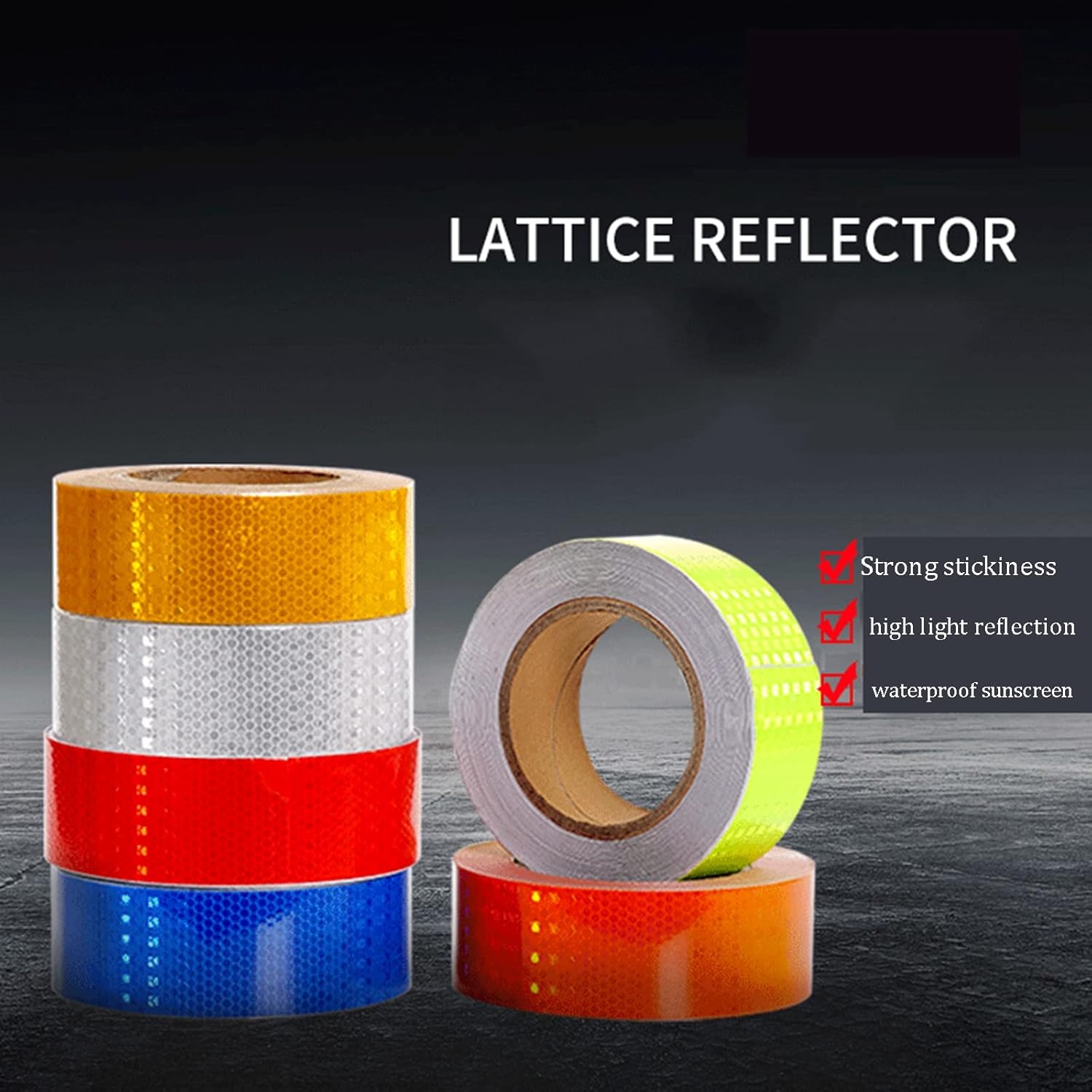 Reflective tape 5cm traffic safety tape reflective sticker warning strip lattice reflective film body stickerProduct size:Width: 5 cm/2 in Length: 25m/82ftcolour:red, yellow, blue, green, orange, whiteProduct composition:1 volumeInstallation steps:Step 1: Use scissors to cut out the length you need.Step 2: Use a rag to clean the surface so that there are no dust or water on the surface.Step 3: Paste the tape on the surface with your hand or tool.Product features:Attention-getting brightness improves temporary traffic control safetyWeather resistance, keep good reflection in the bad weather, like the raining day, foggy or dark conditionDustproof, moisture proof, easy to erase.Tear Growth Resistance, Scratch resistance, water/oil ResistanceProduct use:widely used in transportation, construction engineering and agricultural production tools, such as trucks, trailers, ractor,Container,crane,stage, barricade,garage,corridor,letter boxes, fences, Road signs, warning posts, anti-collision posts, guardrails, bicycles, motorcycles, trolleys, trailers, etc