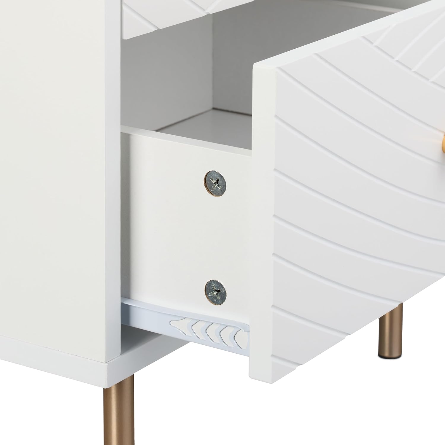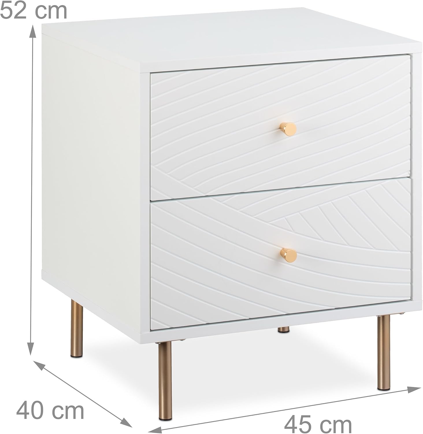 | Item Type Name | Relaxdays Bedside Table, 2 Drawers, Bedside Cabinet Bedroom, Side Table, HxWxD: 52 x 45 x 40 cm, White/Gold |
