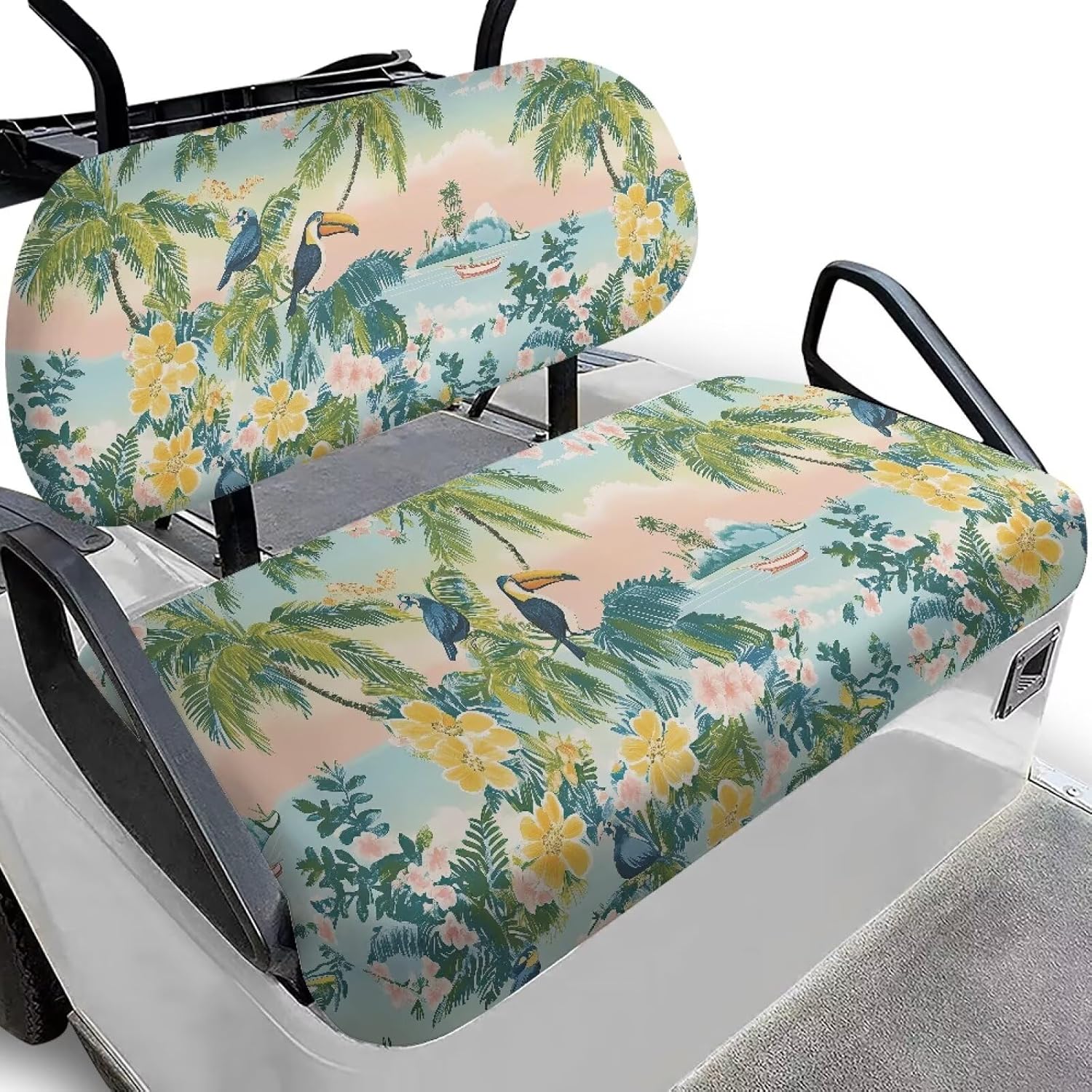 2 Pieces Set, Includes 1 x Golf Cart Seat Cover and 1 x Golf Cart Backrest Cover. Universal Size, our golf cart seat cover set are made of stretch fabric with an elastic band, suitable for most 2 person seats golf carts, sightseeing cars, etc. Please confirm the seat size before purchasing. DThis full coverage golf cart seat cover set not only protects your seats from dirt and wear and tear, but also adds style to your golf cart with its beautiful graphic design. It won't make you feel stuffy when you sit on it in hot summer days, and provides warmth in cool spring, fall and winter, providing more convenience for your outdoor golf activities. A variety of patterns, colors for your choice, flag, starry sky, rainbow, fruits, butterflies, horse, star, southwest aztec tribal, mushroom, cow print, leopard print, dragonfly, cats, dogs, cute pattern, black, pink, orange, grey, brown, ect. Can as perfect Birthday gifts, Mother's Day gift, Christmas gifts, Father's Day gifts, Valentine's Day present, Easter gift, New Year gift, St. Patrick's Day, Thanksgiving gift, Halloween gift etc. These Golf Cart Accessories is the nice gifts for women, men, boss, fathers, mothers, husband, wife, brothers, sisters, people who like golf cart decorative accessories. Notices: 1. The sizes have been shown in the detailed pictures, please read carefully before purchase. 2. The color difference between the product and the picture is normal due to the difference of shooting light or the screen display. 3. The dimensions are measured manually with deviation of 1-3 mm. 4. If you are not satisfied with product , please feel free to contact us.