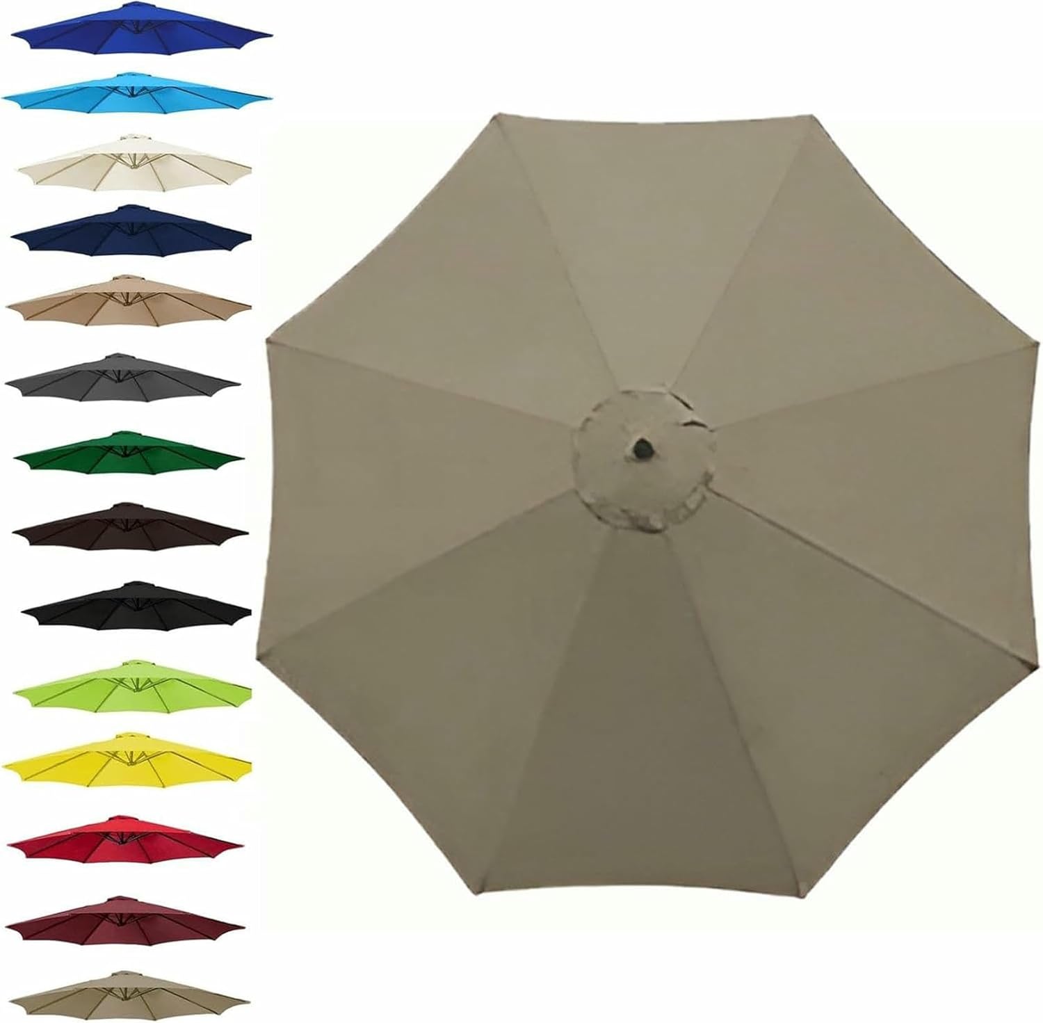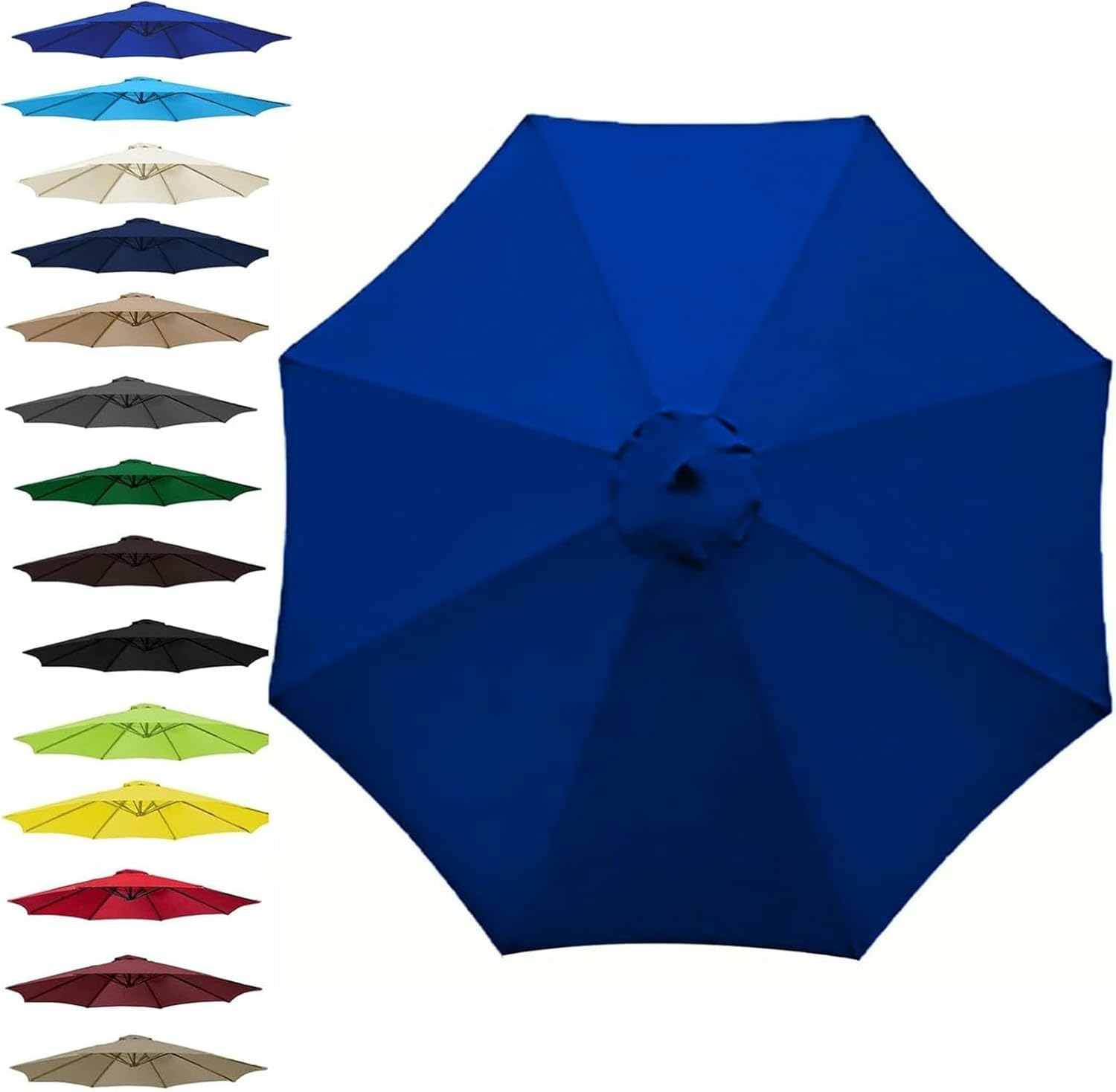 ✈ Universal Umbrella Replacement Cloth, this canopy has been designed to provide a general fit, for most patio umbrellas.- Revive your look with a new replacement umbrella canopy, sure to catch the eye at your next party, holiday, neighbor or everyday beautiful look.✈ Features:1. Anti-ultraviolet, breathable. It keeps the sun out and allows the breeze to pass through.2. The tarp is very easy to install, it only needs a few people and it can be installed in a few minutes. It is very easy to install and remove.3. Suitable for courtyards, terraces, swimming pools, beaches, gardens, table umbrellas, etc.✈ SpecificationName:Replacement Umbrella Cover/Sun Umbrella Replacement ClothMaterial: PolyesterSize: 200 cm/2.7 m/300 cmNumber of ribs: 6 ribs, 8 ribsColor: red , green , burgundy , black , top color , lake blue , gray , khaki , navy blue , brown , grass green , yellow , royal blue✈ Package included:1 x replacement umbrella cloth(canopy only)✈ Brilliant idea saved buying a new parasol.