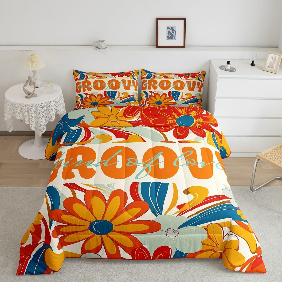 Size Information Twin size: 1 Down Comforter 68"W x 90"L, 1 Quilted Pillowcase 30"W x 20"L. Full size: 1 Down Comforter 79"W x 90"L, 2 Quilted Pillowcases 30"W x 20"L. Queen size: 1 Down Comforter 90"W x 90"L, 2 Quilted Pillowcases 30"W x 20"L. King size: 1 Down Comforter 104"W x 90"L, 2 Quilted Pillowcases 36"W x 20"L. Versatility We have many kinds of styles for you to choose. You can easily find a product that suits the style of your room. The item is not only Suitable for your home, bedroom, guest room, living room, or rv, your families, friends, relatives, boyfriend,girlfriend. Modern Design The luxury aesthetic comforter set is made reactive printing and dyeing process. The pattern is clear, the color is bright, which will not fade after repeated washing. Personalized As a manufacturer of digital printed home textiles, we follow current trends and bring you the latest and stylish home textile products. The item will make the room decorated in exquisite taste