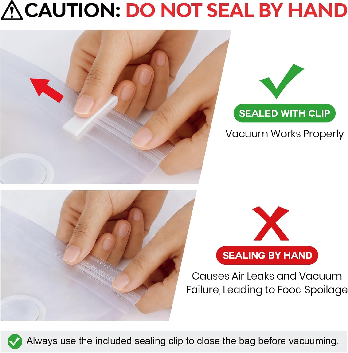 Smart Food Storage Starts Here Take control of your kitchen with versatile vacuum sealer bags designed to extend freshness, prevent food waste, and simplify your storage routine. Whether you’re meal prepping, freezing leftovers, or sous-vide cooking like a pro, these reusable bags offer the convenience and performance today’s home cooks demand. Lock in Freshness, Flavor & Nutrition Thanks to advanced multi-layer PE/PA construction and a secure double-zipper system, these bags are built to preserve your food’s taste and texture. The integrated air valve design ensures airtight sealing—without requiring a bulky heat sealer—making them ideal for both dry and moist food storage. Enjoy the flavor of freshly marinated meats, crisp vegetables, and juicy fruits days—or even weeks—after packing. Built for Every Kitchen Task Freeze it, microwave it, sous-vide it—these bags can handle it all. Safe for a range of cooking and storage methods, they help prevent freezer burn, reduce oxidation, and extend shelf life up to five times longer than standard storage options. These bags deliver professional results every time. Easy to Use, Easy to Track Transparency is more than a visual design—it's a practical feature. With clear bags, you can quickly identify contents without unsealing. Plus, the writable label area lets you track storage dates and food types at a glance. Say goodbye to forgotten leftovers and mystery bags in the freezer. Reusable, Reliable Designed to be reused many times, these bags are a smart alternative to single-use plastic. After use, simply flip inside out, clean with warm water and mild soap, and dry for next time. This means less waste, more savings, and smarter food storage with every meal. 📦 A Value Set for Real-Life Needs This set includes 30 vacuum bags—15 in a large size (10.24 x 11.02 in) and 15 in a medium size (8.66 x 8.27 in)—perfectly suited for everything from family dinners to single-portion snacks. Each bag undergoes strict quality inspection to ensure it meets durability, safety, and sealing standards. Say hello to longer-lasting freshness, better meal prep, and less waste. Whether you're storing, sealing, or sous-viding, these vacuum bags are the perfect companion for a smarter kitchen.