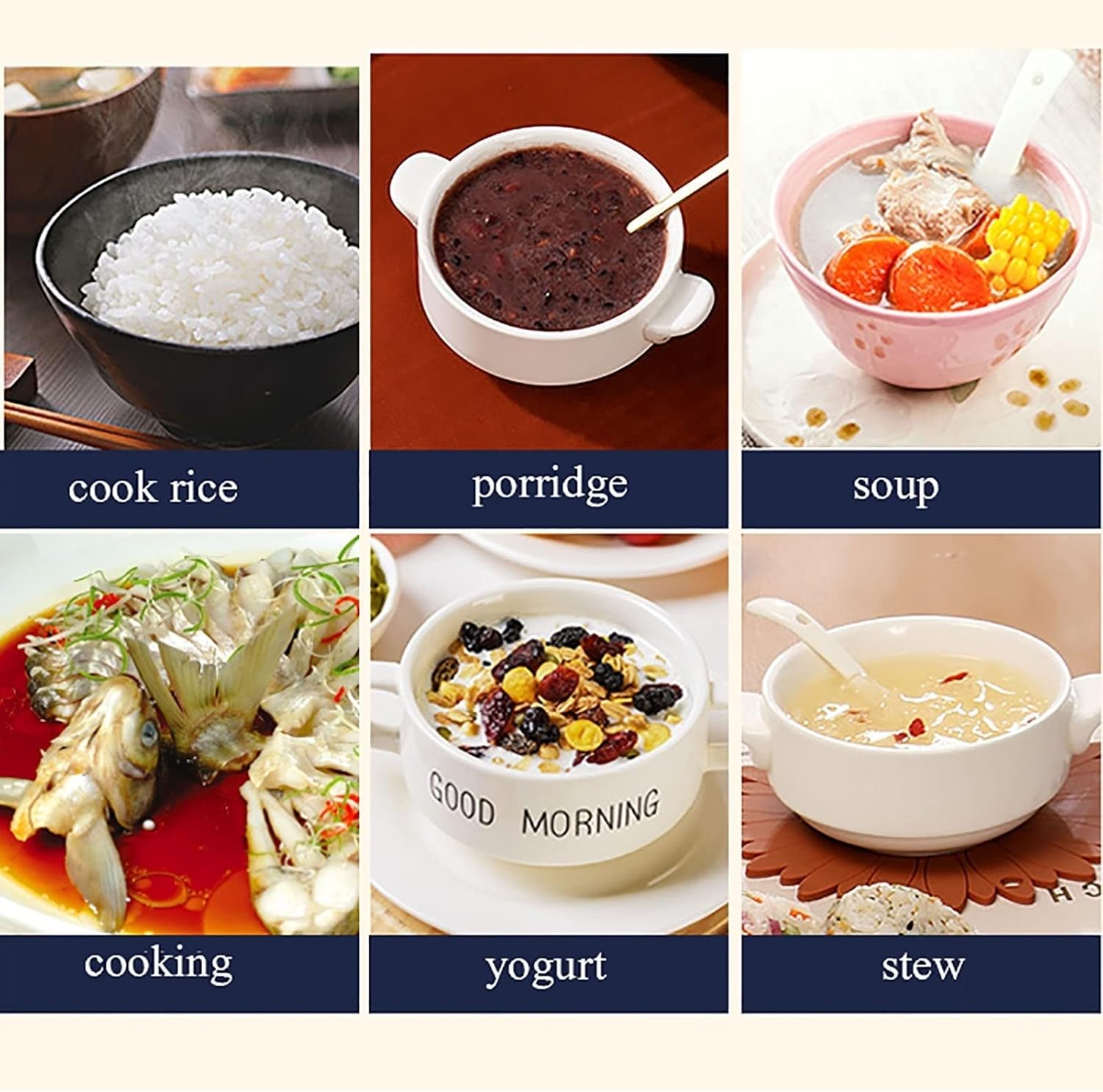 Name: Rice CookerHeating method: chassis heatingLiner material: non-stick linercapacity:1.2L for 1 people1.6L for 1-3 peopleFunction: rice, sushi rice, porridge, cake, egg, stew, etc.Note: 1.The number engraved in the liner is not the size of the pot, it is the ratio of water to rice, please understand.2. Please don't worry about the voltage problem, we will give a local conversion plug according to your address.