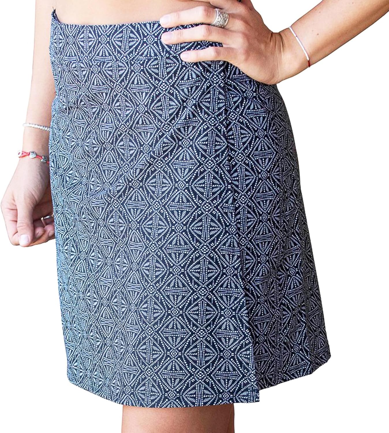 RipSkirt Hawaii is the ideal skirt for active women. Transition seamlessly from the beach to a cafe, we've got you covered. Our unique fabric doesn't stick, flatters various figures, repels water, and dries swiftly if wet. No more embarrassing pool-to-landmarks transitions! Length 2, our most popular choice, is perfect for work, leisure, and everyday wear. Note: The pockets mirror our popular Length 3 side pockets.