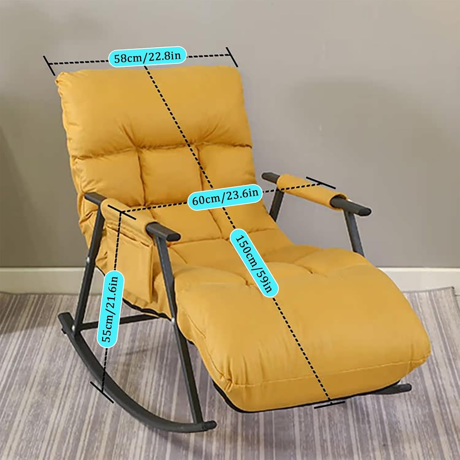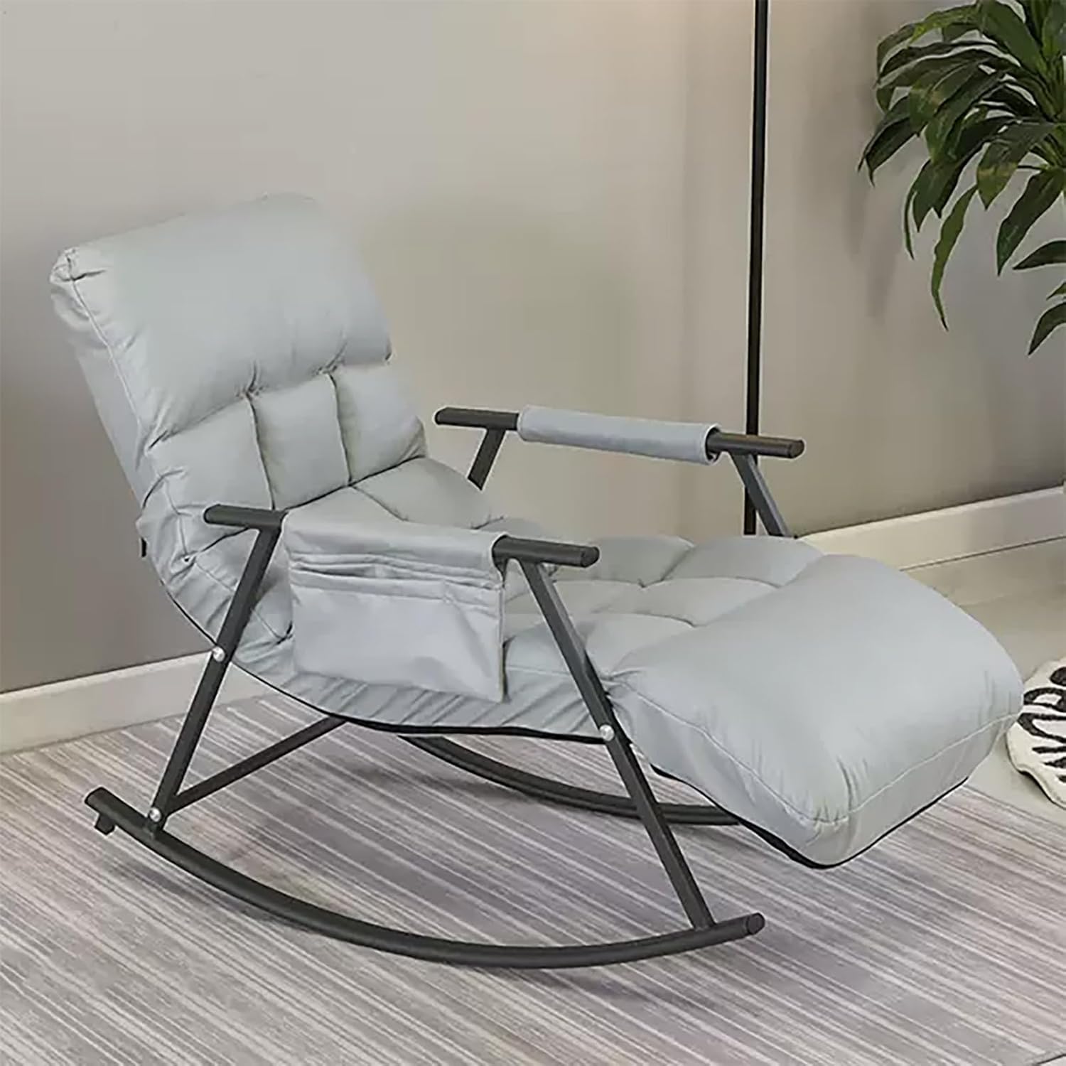 💚 This JIAOCKJIAO leisure rocking chair features a gentle rocking design that creates a soothing motion and ultimate relaxation for you to enjoy. 💚 Anti-tipping design is added to the rear feet, allowing you to sleep soundly and rock freely. Seat cushion zipper design, removable and washable. 💚 With the curved carbon steel frame, the relaxing rocker is a perfect indoor/outdoor chair that can add more comfortable elements to your living space.💚You can comfortably read books, watch TV, chat or take a nap on the seat. Our rocking chair is an ideal choice for your patio, balcony, office, living room, bedroom, etc. Specification:Product Name: Rocking ChairFrame material: Carbon SteelCushion fabric: Technology clothCushion Filling material: Sponge/CottonWeight capacity of chairs: 200 kgFunction: It can be swayedRequires assembly: Yes►Note:1. The above size parameters are measured manually, there will be an error of about 2-5 cm.2. There may be slight color differences due to the display, camera, and other factors, so please refer to the actual product.