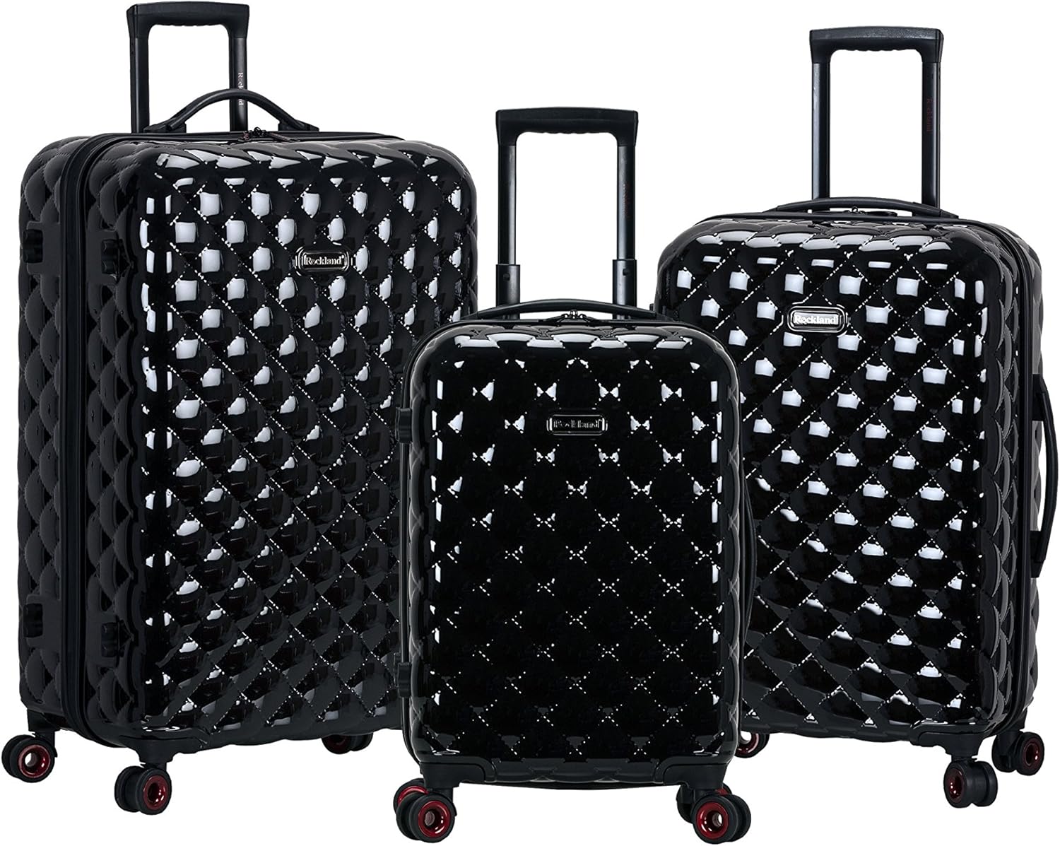 This 3 pc. set is made of polycarbonate/ABS. Polycarbonate is the same material used to manufacturer bullet proof glass. This material is extremely lightweight, durable, and protects the contents of your luggage. Eight multi directional spinner wheels rotate 360 degrees for easy maneuverability. This luggage allows you to pack more while avoiding the excess weight surcharges imposed by most airlines. Multi-directional spinner wheels for easy maneuverability modern internal chrome telescoping handle with push button handle. Interior mesh and zip pocket and elastic pocket 22"X14"x9" (with wheels) weighs 6 lbs. , 24" x15"x10" weights 8 lbs. , 28"x17"x12" weighs 10 lbs.
