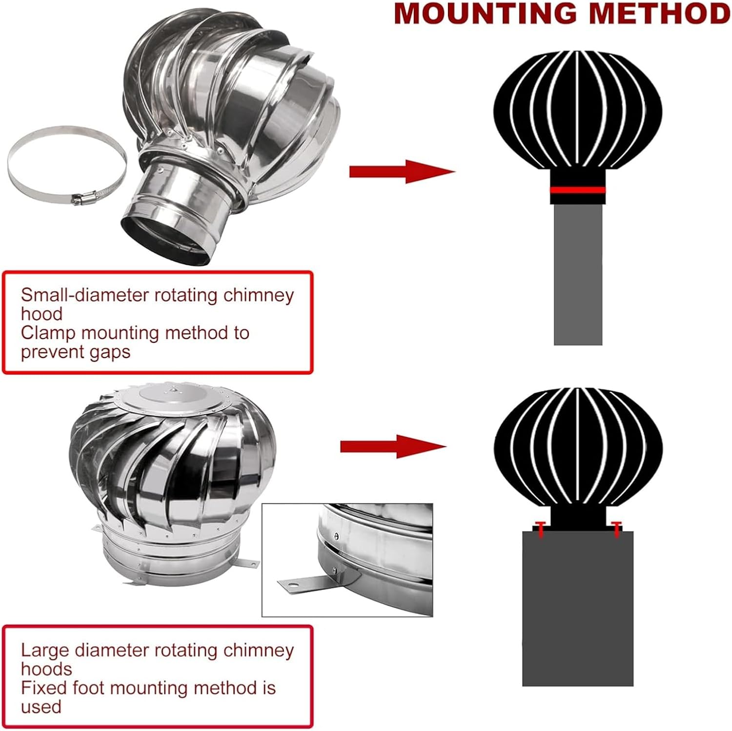 Stainless Steel Ventilation Caps for Exterior WallsMaterial: 304 stainless steel (internal plating)Advantages:Discharges indoor hot air and dirty air, purifying the indoor environment.Utilizes natural wind and air-heat convection to drive the turbine, resulting in zero consumption.Centrifugal force and negative pressure are employed to effectively expel stale air from the room.Application:For ventilation of exterior walls in various settings such as bathrooms, kitchens, warehouses, residences, apartments, etc.Product Name: Rotating Chimney CowlMaterial: 304 stainless steelInstallation method: Clamp installation, perforated installationWarm Tips?Please take care when unpacking and installing. Gloves are recommended to avoid scratching.