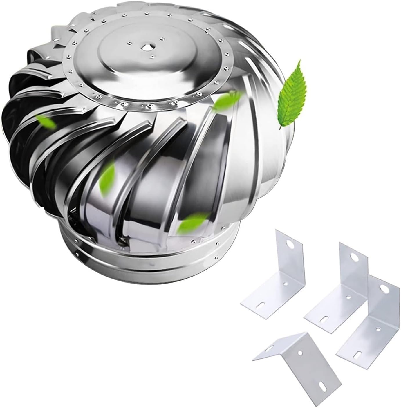 Stainless Steel Ventilation Caps for Exterior WallsMaterial: 304 stainless steel (internal plating)Advantages:Discharges indoor hot air and dirty air, purifying the indoor environment.Utilizes natural wind and air-heat convection to drive the turbine, resulting in zero consumption.Centrifugal force and negative pressure are employed to effectively expel stale air from the room.Application:For ventilation of exterior walls in various settings such as bathrooms, kitchens, warehouses, residences, apartments, etc.- **Specification:**- Sizes Available: 110mm (4.3in), 150mm (5.9in), 160mm (6.3in), 200mm (7.9in), 250mm (9.8in), 300mm (11.8in), 400mm (15.7in)- Material: 304 Stainless Steel- **Package Contents:**- 1 x Stainless Steel Top Cover (with accessories)