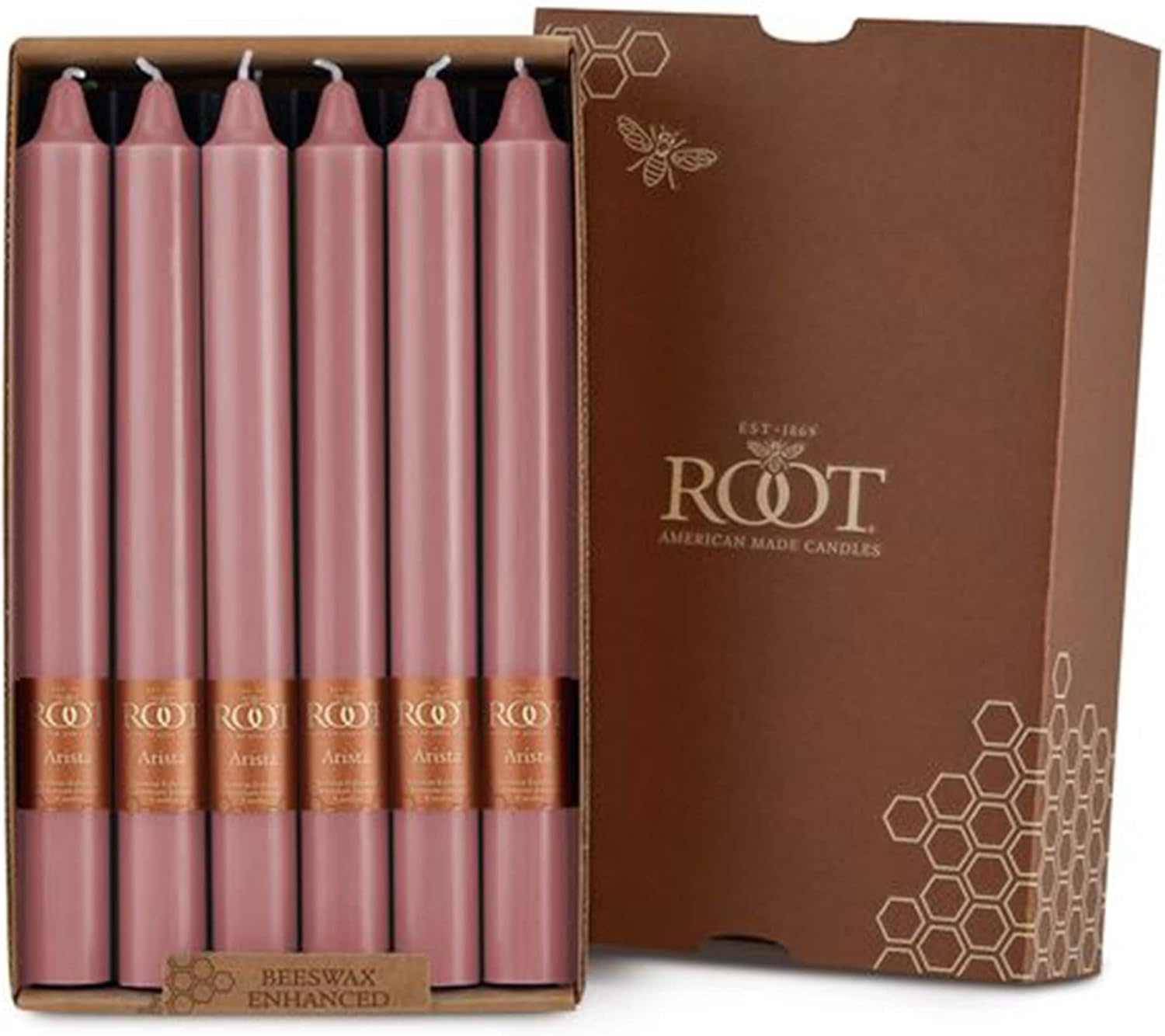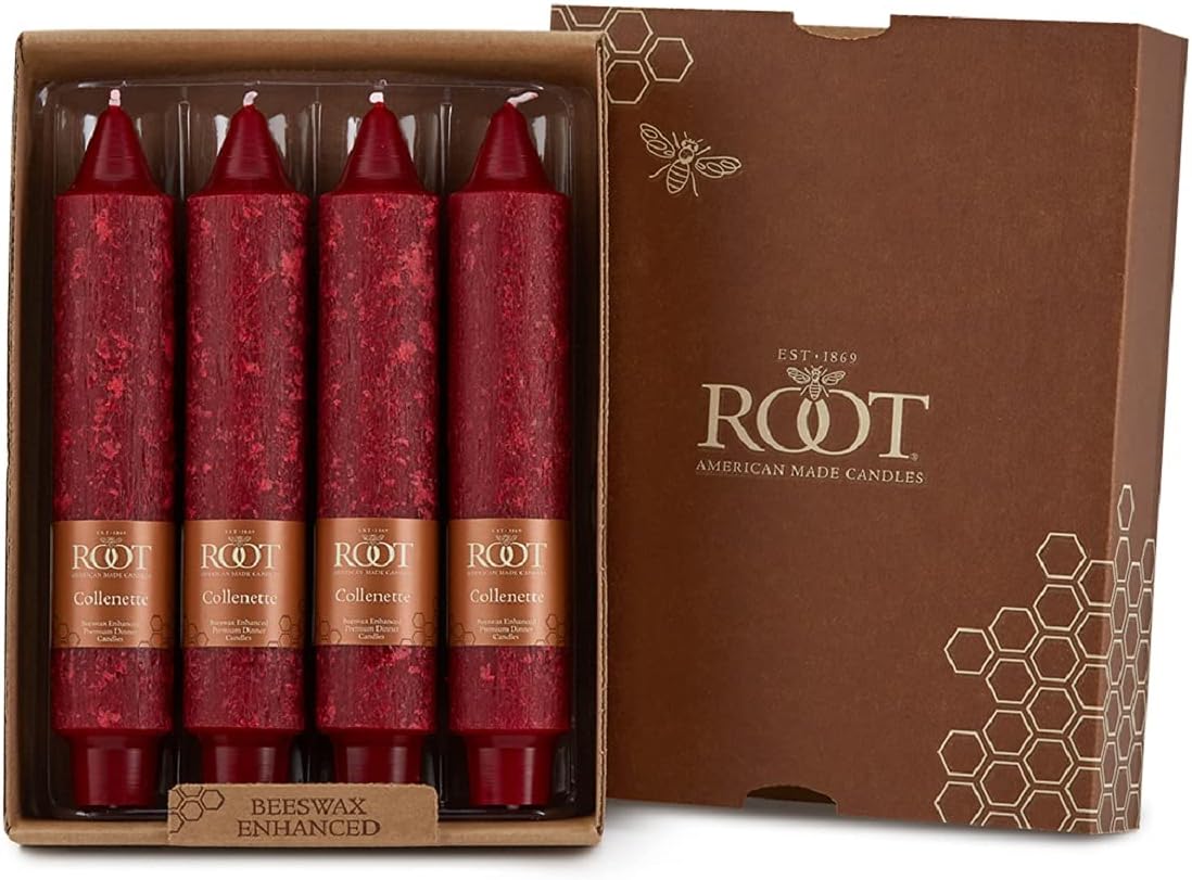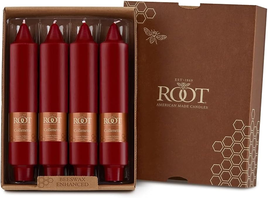 Root - The Best Candles in America, Made in America. First impressions are lasting impressions and the subtle grace of the unscented, beeswax-enriched Collenette linger well past the occasion. Collenette have a distinctive profile that lend themselves to even the most formal events. Root Candles is an iconic American company that traces its lineage back to 1869 when founder Amos Ives Root first opened his doors for business in Medina, Ohio. Since then, 5 generations of Root candlemakers have created the best candles in America. Candles are manufactured according to all ASTM (safety) standards. Root manufactures their own all-natural cotton wicks and test burns 1,000 candles every day to check fragrance throw, emissions, soot, flame strength, stability, useful life, welling, dripping, and burn time. Stringent color matching is done daily to ensure consistent quality from batch to batch.