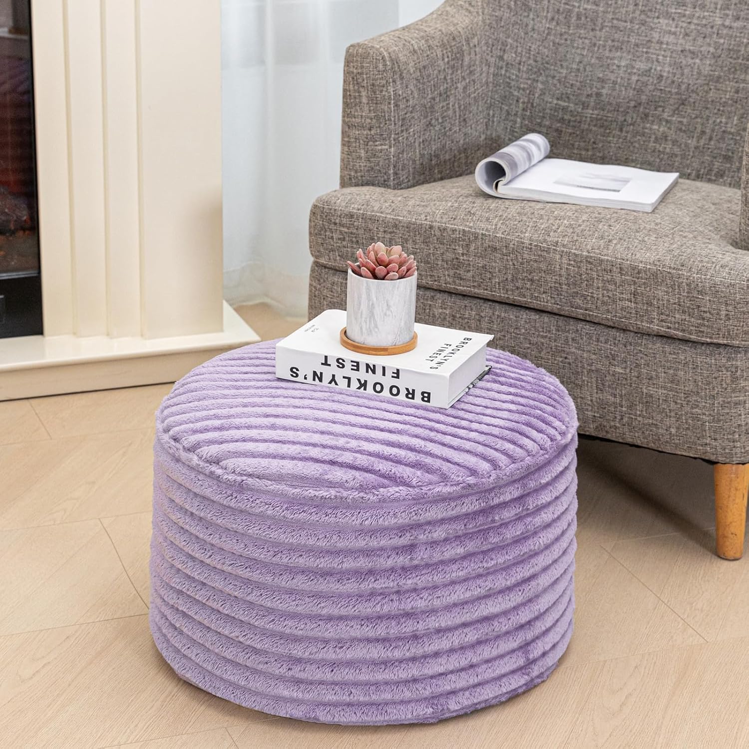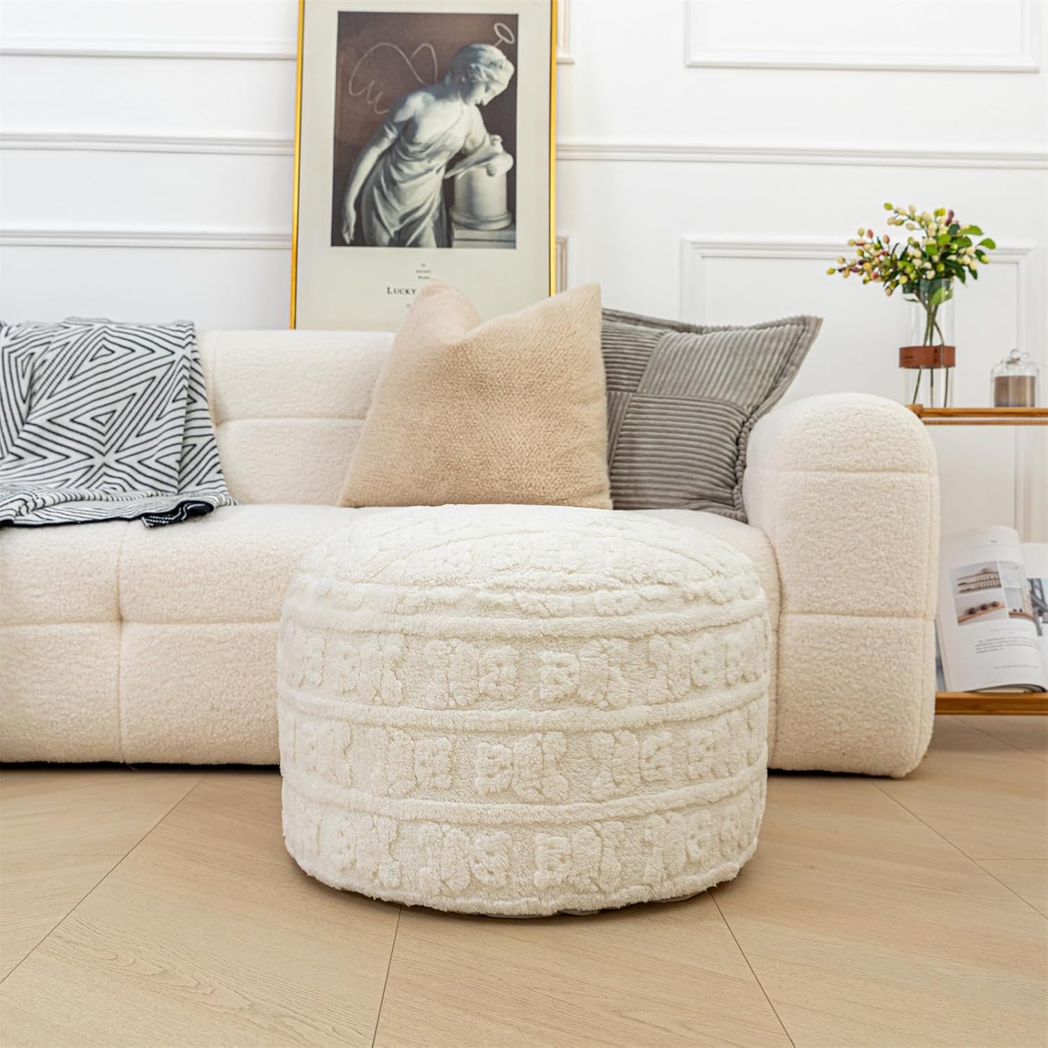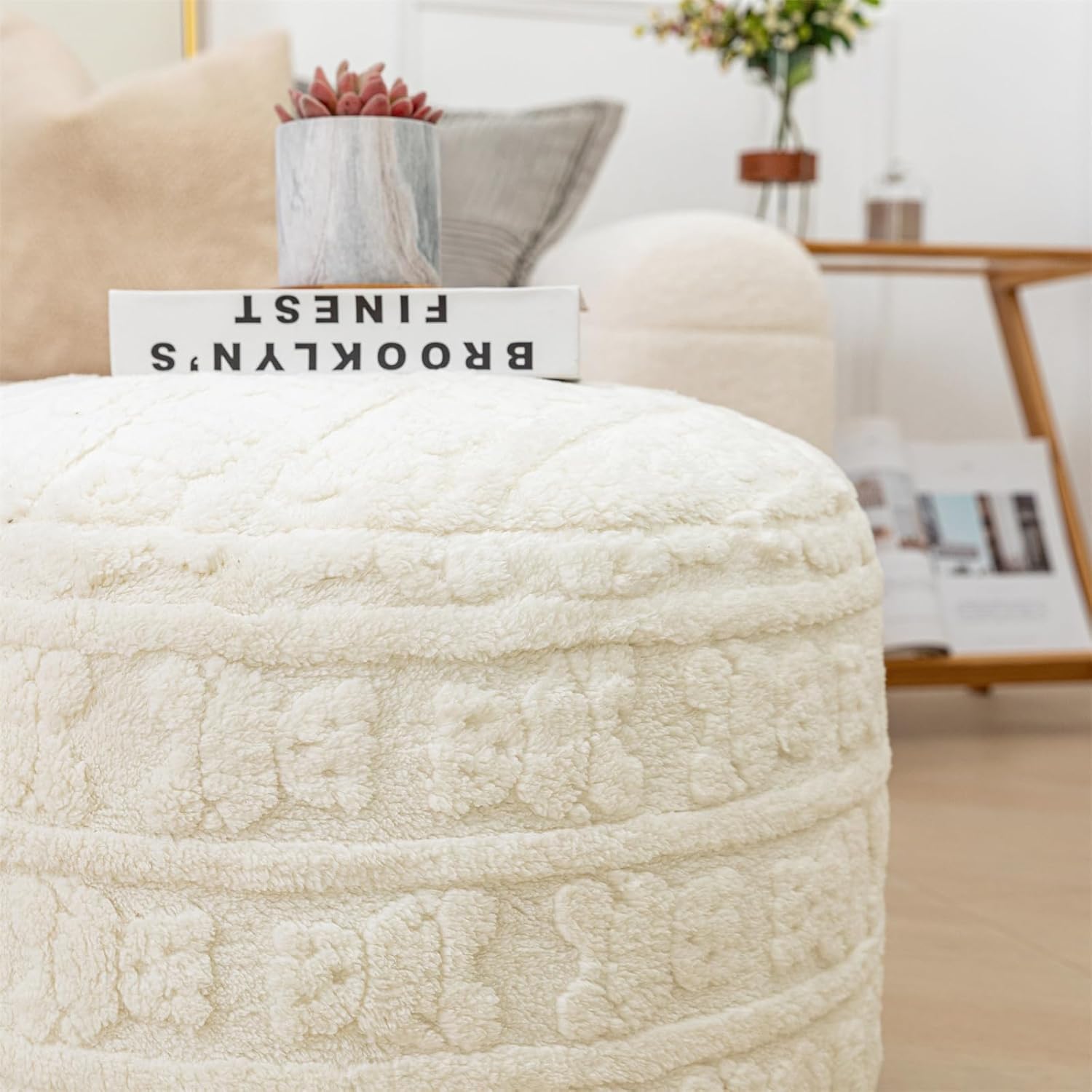 | Frame Material | Plush fiber pouf ottoman cover and high-density foam filler |
