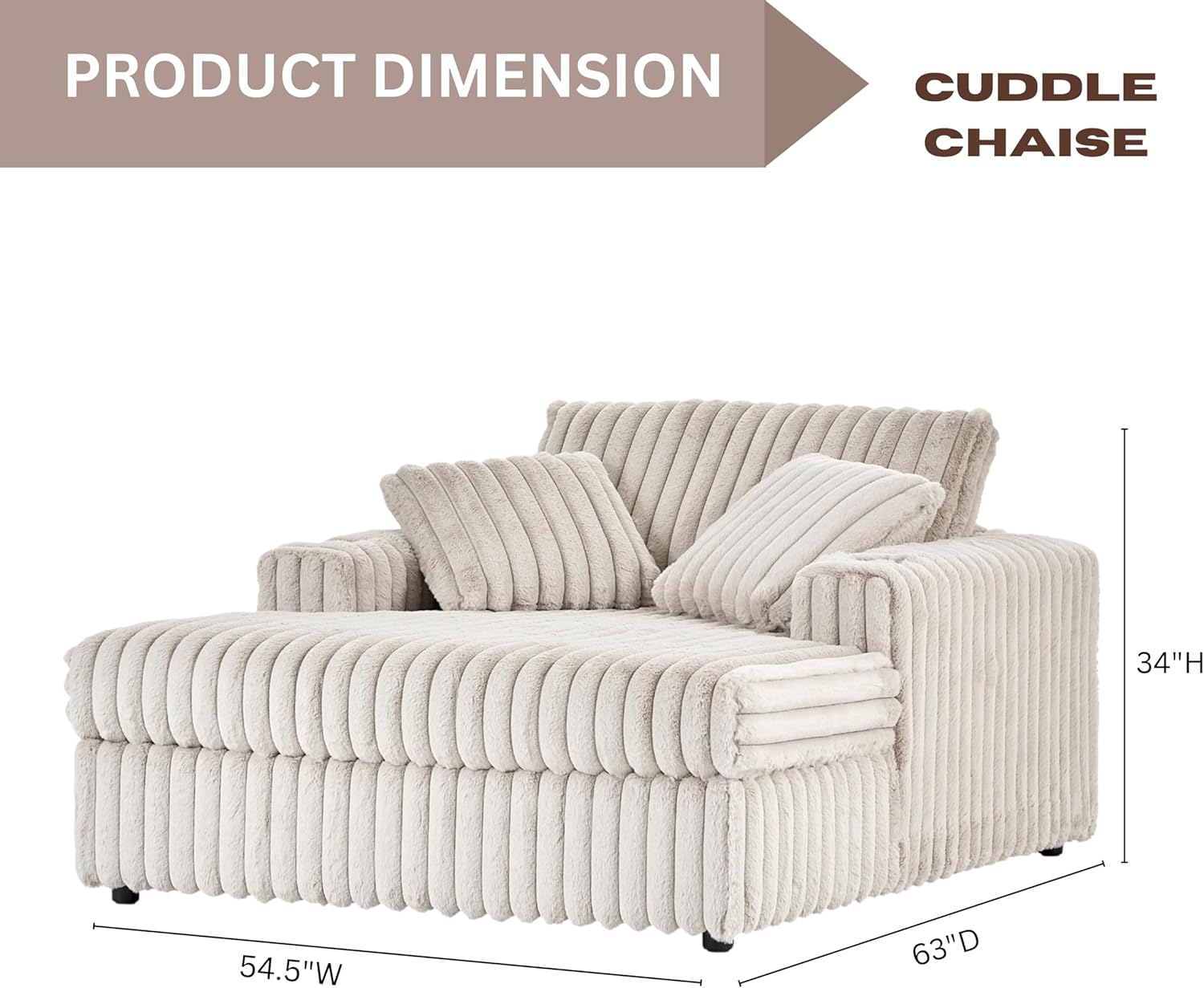 Experience a seamless blend of comfort and style with the Roundhill Furniture Belvoir 3-Piece Living Room Set. Including sofa cuddle chaise and ottoman, this set is a beacon of contemporary design. Featuring plush, on-trend jumbo cord upholstery paired with loose seat and back cushions for maximum relaxation, this set embodies sleek design. A corner-blocked wood frame and high-resilience foam cushions ensure lasting durability, while chic exposed feet with a rich espresso finish add contemporary elegance. Every moment spent on this living room set invites you to a serene retreat. Elevate your living room with the Belvoir Collection from Roundhill Furniture. This multi-functional set is crafted with meticulous attention to detail. Available in two elegant colors: Beige Champagne and Charcoal Gray. Matching accent pillows included.