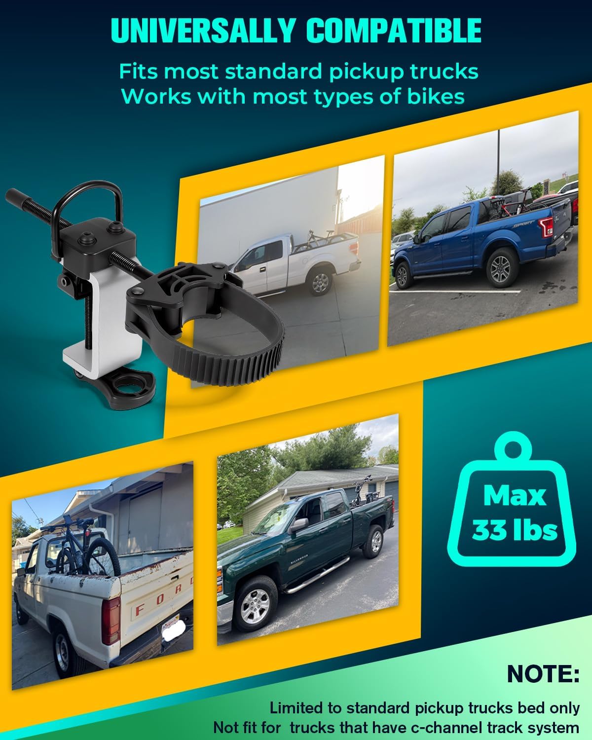 Max Load 33 Lbs,RT201 Truck Bed Bike Rack, Universal Fit, Power Grip Mounting