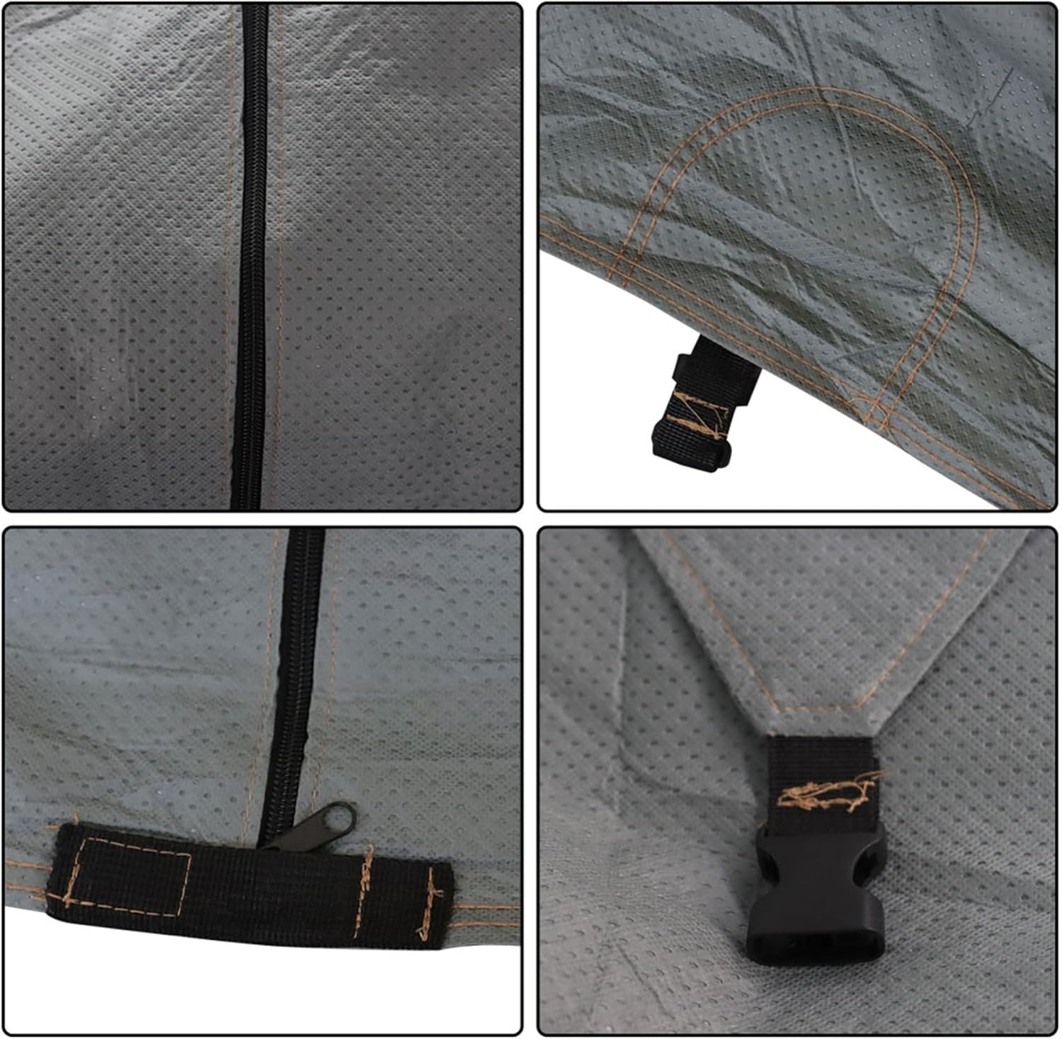 Please carefully measure the size of your RV before purchase to ensure that you buy the right option. Feature: Product Size: 480inch (L) x 110inch (W) x 120inch (H)Vehicle Service Type: Recreational VehicleTop Cover Material: Top 4 layers of non-woven fabricColor: Deep GrayNote: Choose the right size to ensure a tight fit.The total length includes the bumper, but does not include the hitch.If you have a roof mounted air conditioner, add 1 foot to the total length.The measurement includes the spare tire (if installed at the rear of the camper).