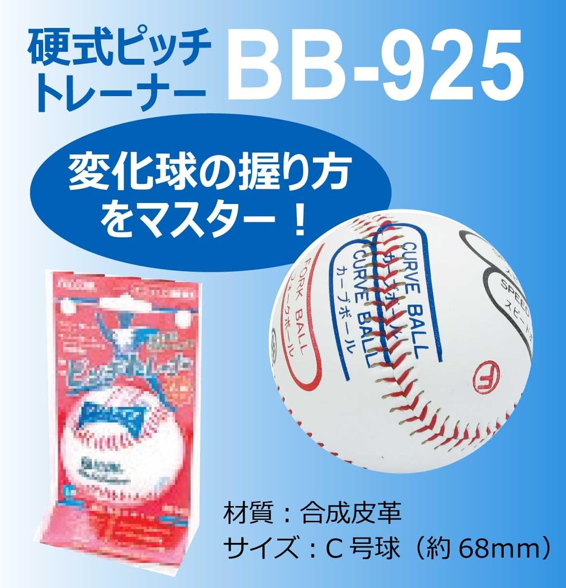 Speed ball, curve and fork finger position on ball Throw the changing sphere Diameter approx. 2.7 inches (68Material: Synthetic leather. C-ball size