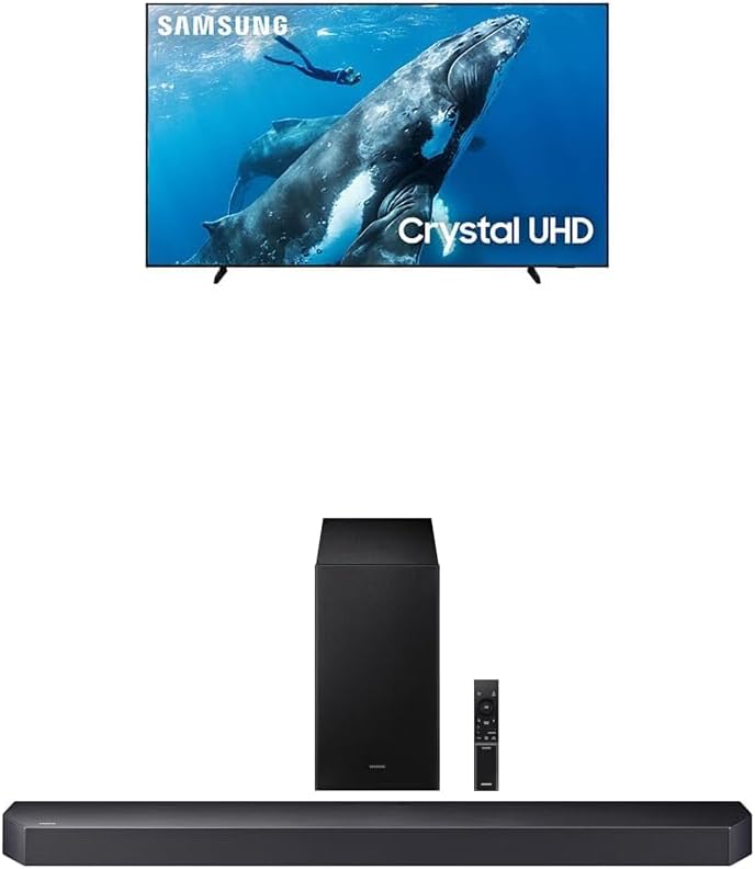 Make the most of your big screen with a wide picture ratio that displays every color in crisp 4K resolution. Add ultra-smooth action and improved contrast to the mix for a hugely impressive view.¹Utilizes AI-Based formulas. ²Motion Xcelerator 120Hz is sometimes called Motion Xcelerator Turbo. ³Q-Symphony requires compatible 2020-2024 Samsung TV and either a Q-series or S-series soundbar. ⁴Samsung Account required for network-based smart services, including streaming apps and other smart features. Separate [connected] computer, mobile or other device may be necessary to create/log in to Samsung Account (free to download and create). Without Account log in, only external device connections (e.g., via HDMI) and terrestrial/over-the-air TV (only for TVs with tuners) available. ⁵High speed internet connection, additional gaming service subscriptions, and compatible controller required. Game Bar UI is subject to change without prior notice.