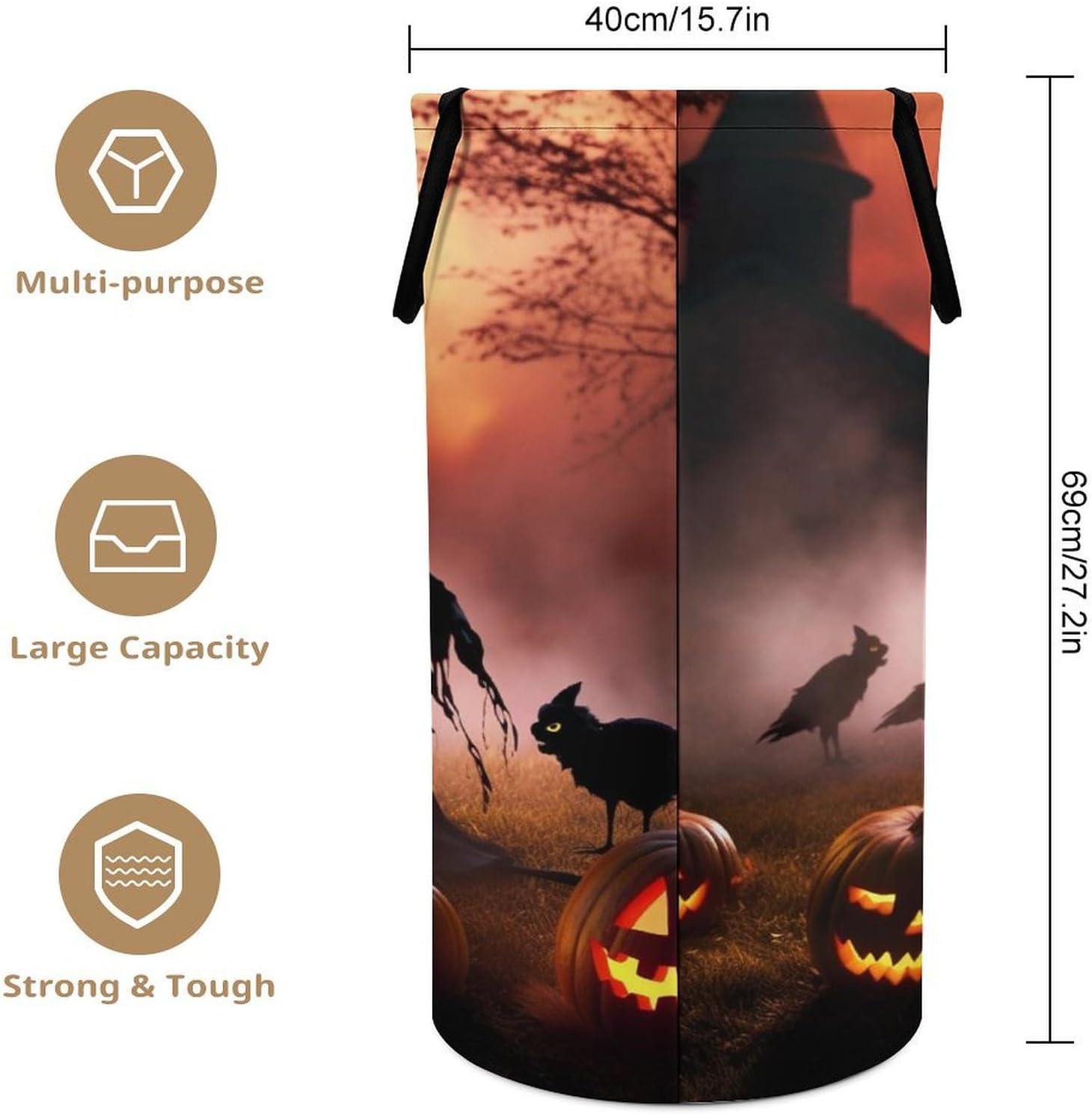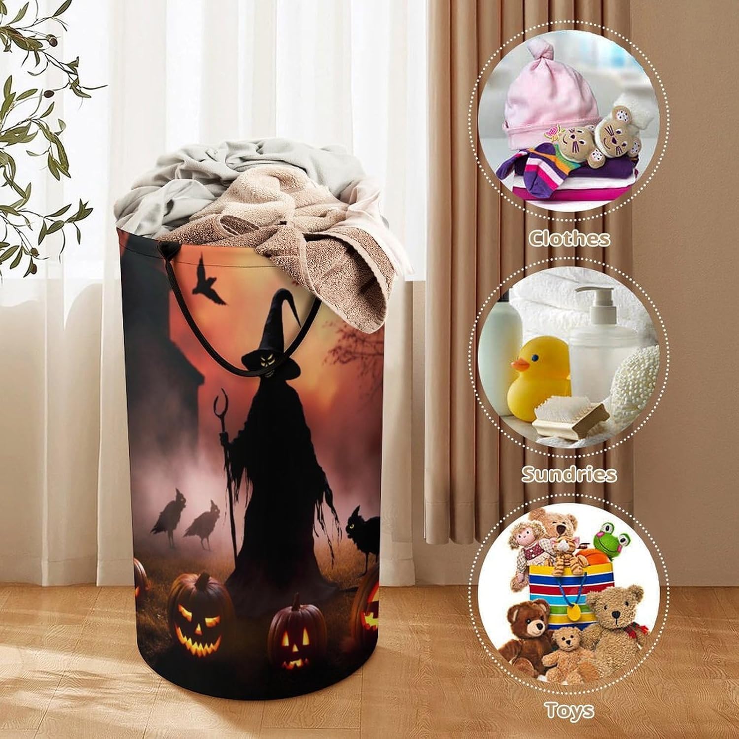 Large Laundry Basket Scary Halloween Laundry Hamper Bag Washing Bin Clothes Bag Collapsible Tall with Handles Waterproof Travel Laundry HamperDescription:-- The Scary Halloween laundry basket bag is made of oxford cloth, which is comfortable and breathable, and not easy to mold;-- There are intimate handles on both sides, which is easy to carry, firm and not falling;-- The enlarged capacity can easily hold all kinds of clothes and sundries;-- The foldable basket does not take up space and is light and easy to carry.Modern and Stylish DesignWith modern and stylish design, our Circular hamper combine both of the ornamental and practical forms. Fabric reusable Circular hamper are easy to grab and carry just about anything. They are not only household life good helpers but also charming decorationsSuitable for Any OccasionWith our Scary Halloween storage bins/laundry hamper, you will have a designated spot to neatly store items and keep your family and living spaces organized and efficient while still being within the comfort of your home. Put it in every place in your hourse, living-room,balcony, bathroom, drawing room, hallway, cloakroom or office.NOTE:If you have any puzzles about our products, please feel free to contact us. Wish you a nice life.