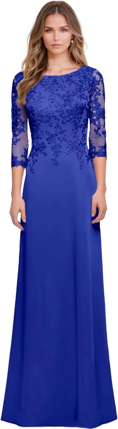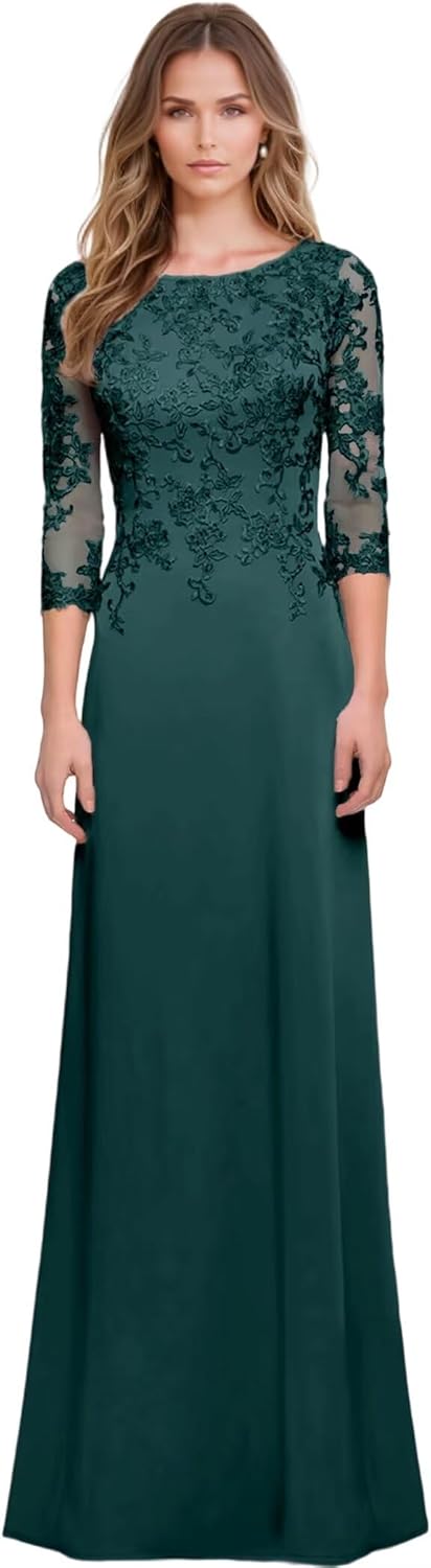 3/4 Sleeve Chiffon Mother of the Bride Dresses for Women Wedding Guest Scoop Neck Mother of the Groom Dresses for Women Floor Length A Line Chiffon Formal Dresses for Women Wedding Guest 3/4 Sleeves Long Mother of the Bride Dresses for Seniors Elegant Plus Size Mother of the Bride Dresses for Women Lace Applique Mother of the Groom Dresses Plus Size Chiffon Evening Gown with Sleeves