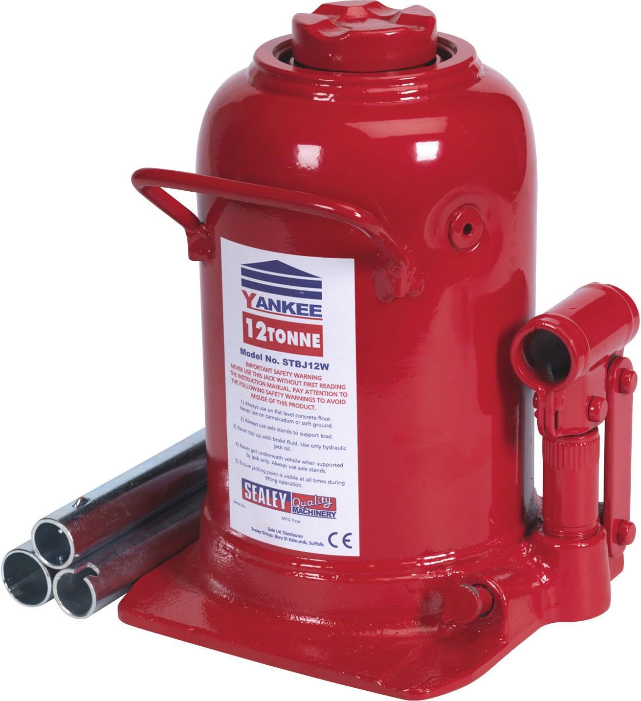 Product Description Telescopic two-stage hydraulic ram gives a much larger maximum lift without compromising closed height. Base and reservoir machine welded for increased strength and reduced chance of leakage. Threaded pump assembly allows for easy disassembly and maintenance. Supplied with 3pc handle. Model No's STBJ10W and STBJ12W feature carrying handle and screw extension. Model No. STBJ4HLW features High lift function. Set Contains: 1 x Piece