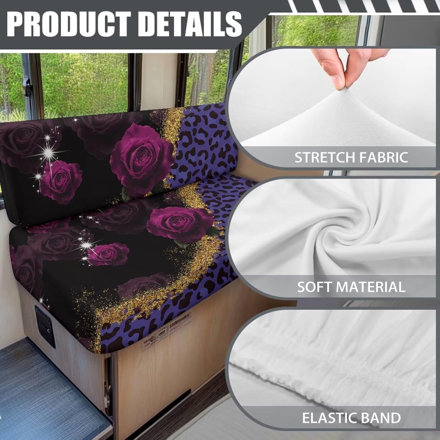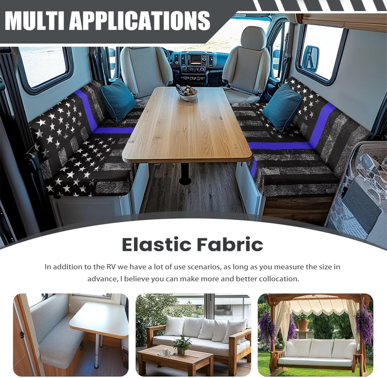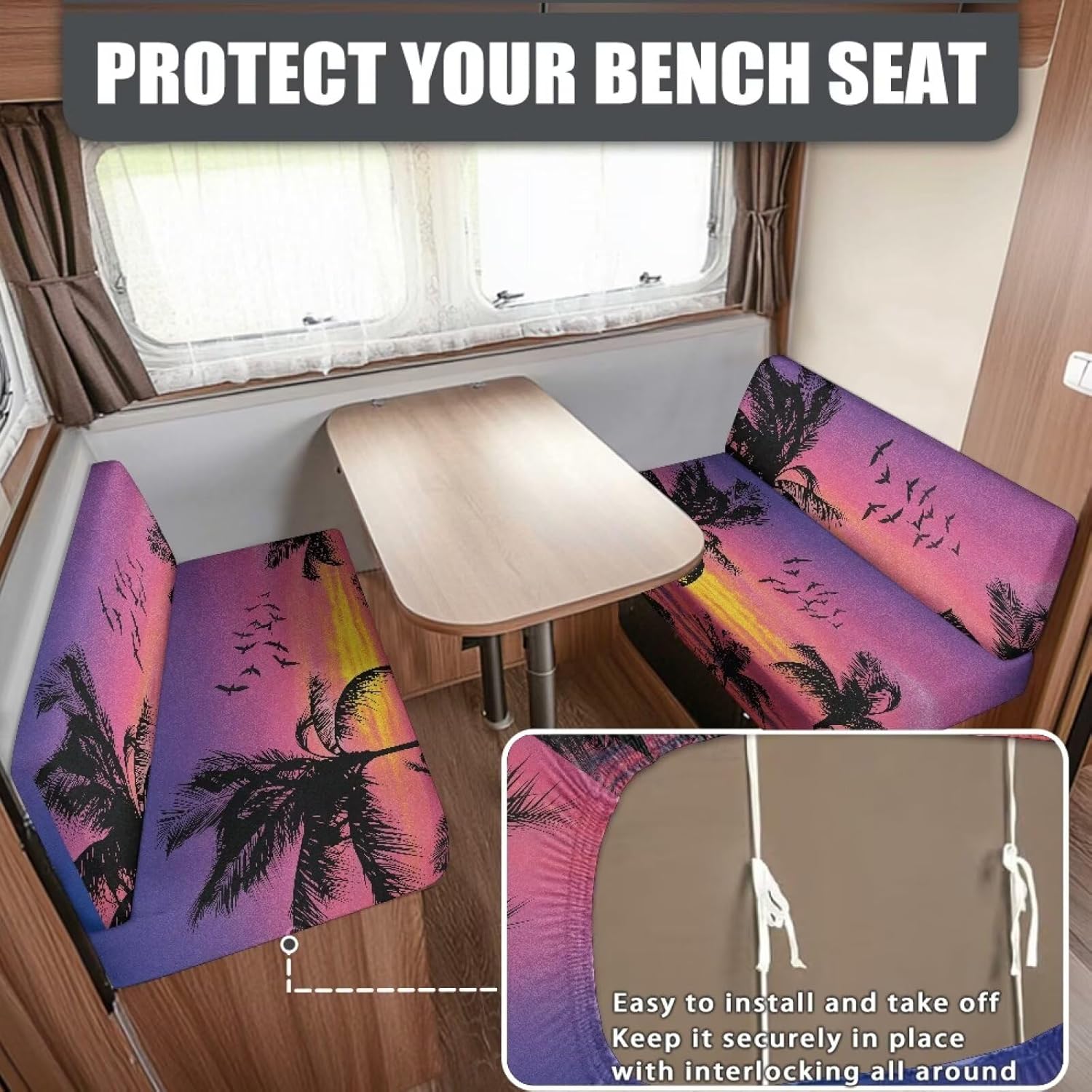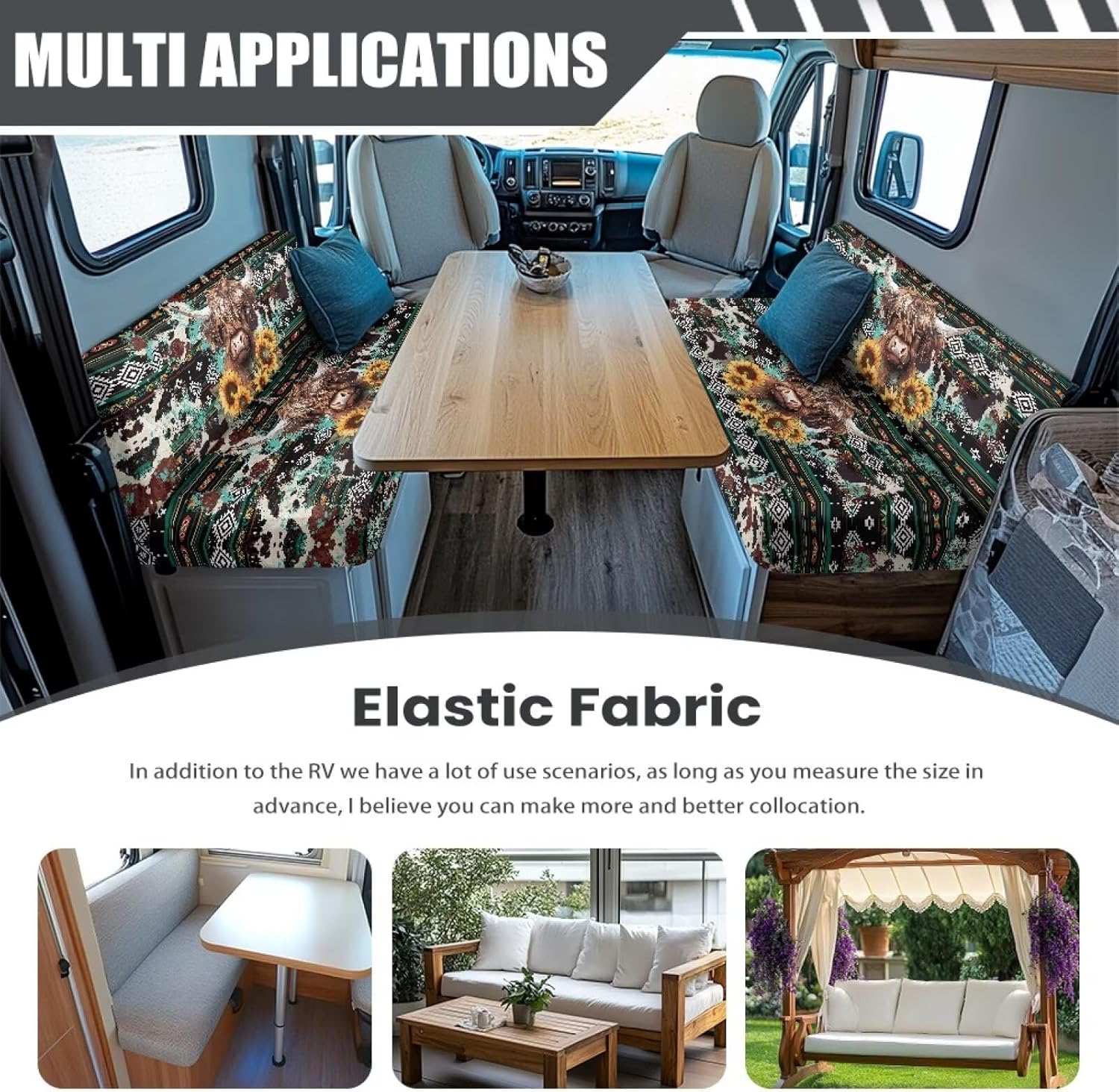 Specification Size : Please check our size chart before ordering Material: Polyester+Spandex Package: Two piece Feature This rv dinette cushion covers is made of polyester and spandex. Durable, wrinkle-resistant, anti-pilling, no need to worry about deformation after long-term use. Stretchy and strong enough to fit most the size of rv dinette cushions perfectly. Includes: 1x Bench cover and 1 x Backrest cover. Replacement camper cushions cover can fully protect your sofa cushion from everyday damage, such as accidental splashes, scratches, spills, and pet hair. Great choice for families with children and pets. Dress up your furniture with our cover to add aesthetic and vibrant sense for your RV Dinette Car Washing Instructions It is recommended to wash by hand and wash with cold water. Do not soak for a long time, do not bleach, and do not exposed to sunlight for a long time Notes We are committed to providing you with high quality products and excellent service. If you have any questions or need further information, please feel free to contact us