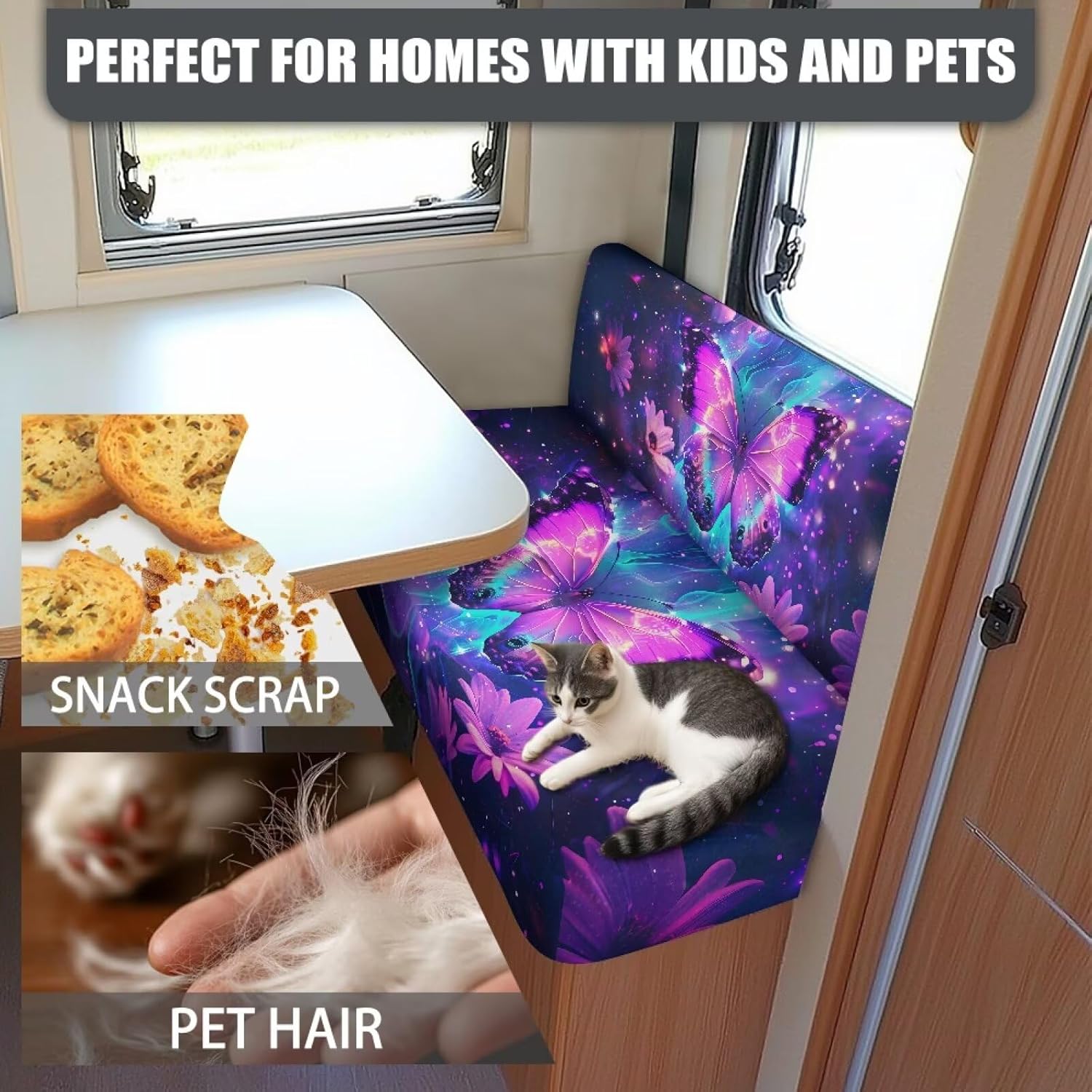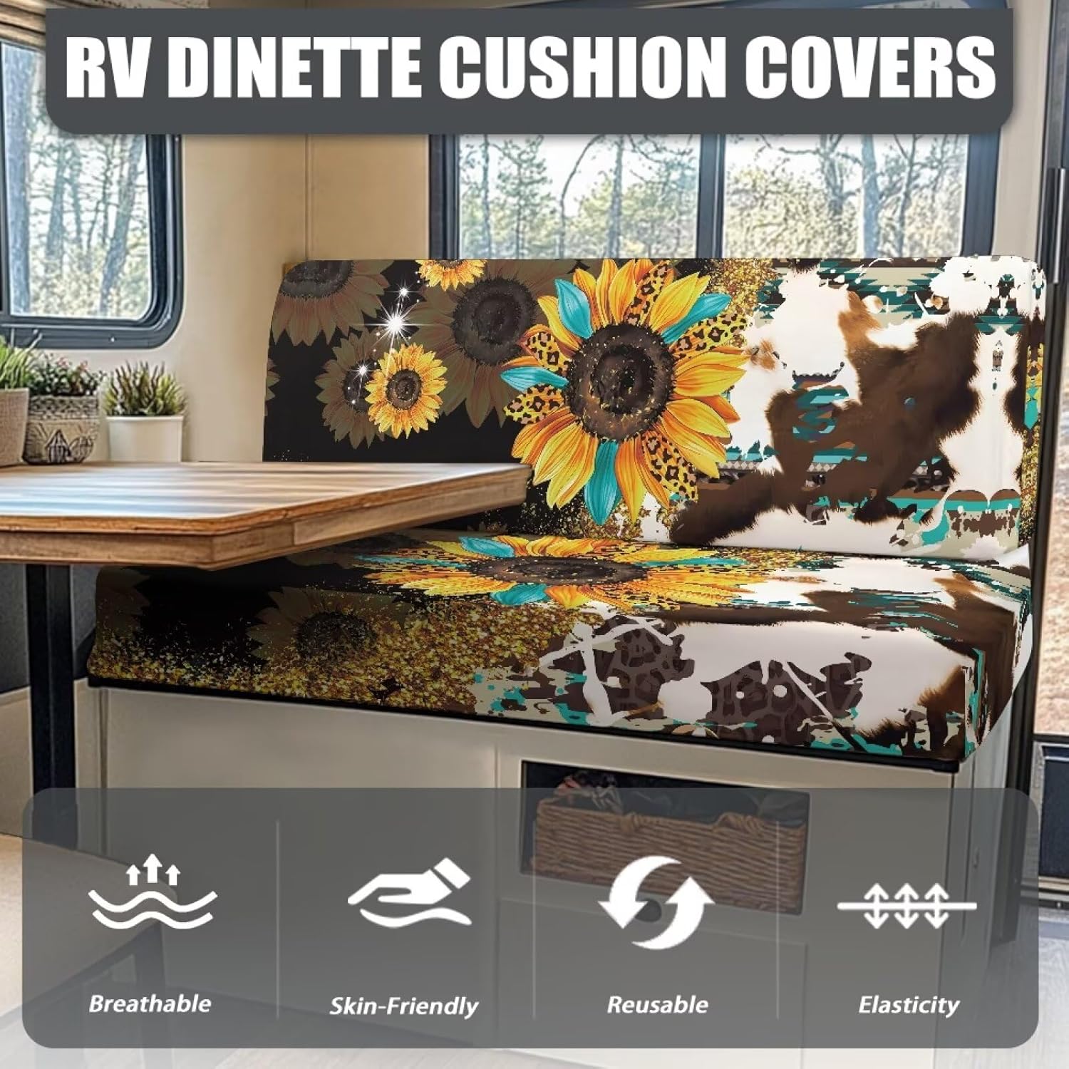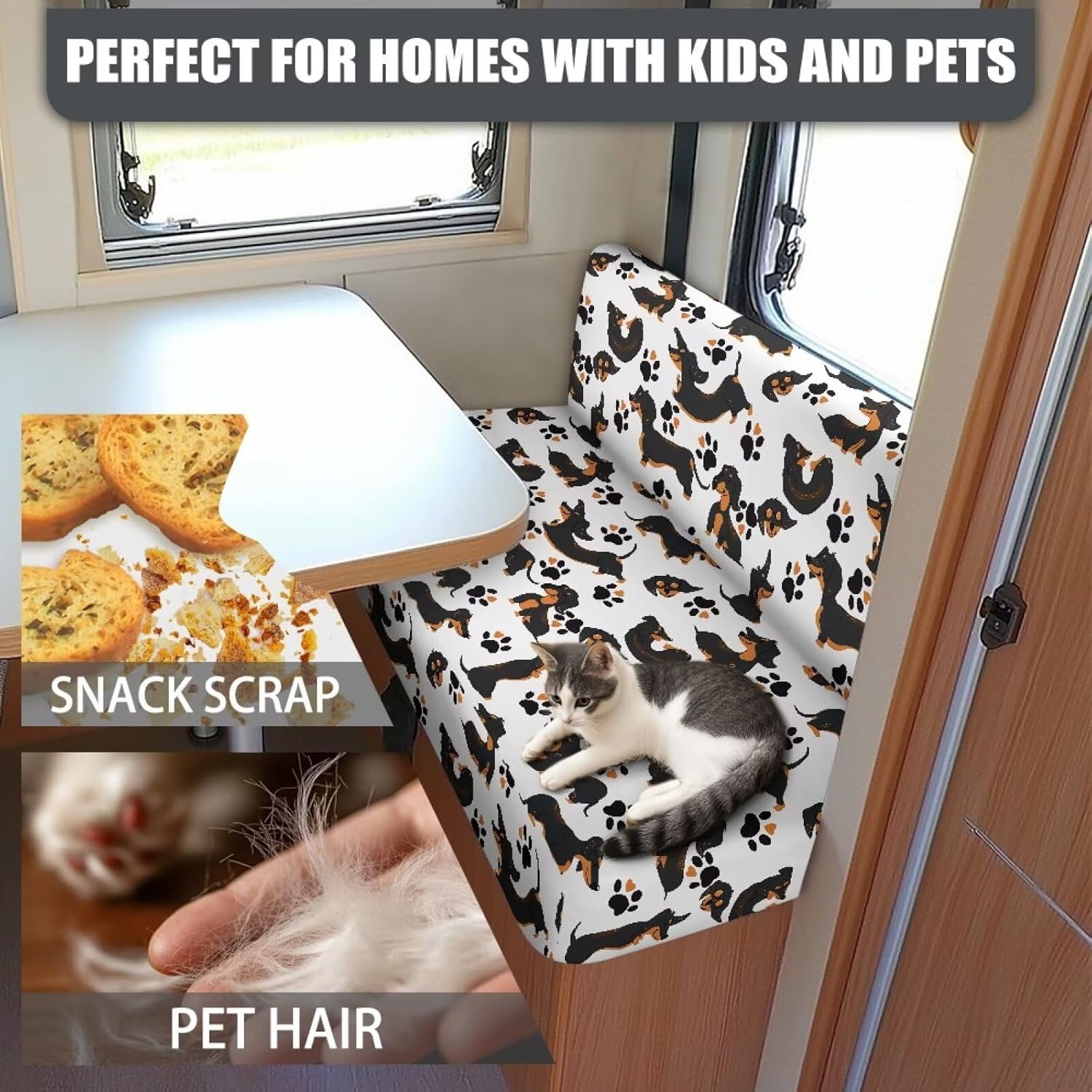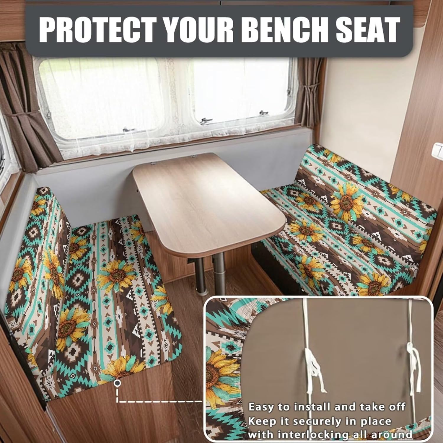 Specification Size : Please check our size chart before ordering Material: Polyester+Spandex Package: Two piece Feature This rv dinette cushion covers is made of polyester and spandex. Durable, wrinkle-resistant, anti-pilling, no need to worry about deformation after long-term use. Stretchy and strong enough to fit most the size of rv dinette cushions perfectly. Includes: 1x Bench cover and 1 x Backrest cover. Replacement camper cushions cover can fully protect your sofa cushion from everyday damage, such as accidental splashes, scratches, spills, and pet hair. Great choice for families with children and pets. Dress up your furniture with our cover to add aesthetic and vibrant sense for your RV Dinette Car Washing Instructions It is recommended to wash by hand and wash with cold water. Do not soak for a long time, do not bleach, and do not exposed to sunlight for a long time Notes We are committed to providing you with high quality products and excellent service. If you have any questions or need further information, please feel free to contact us