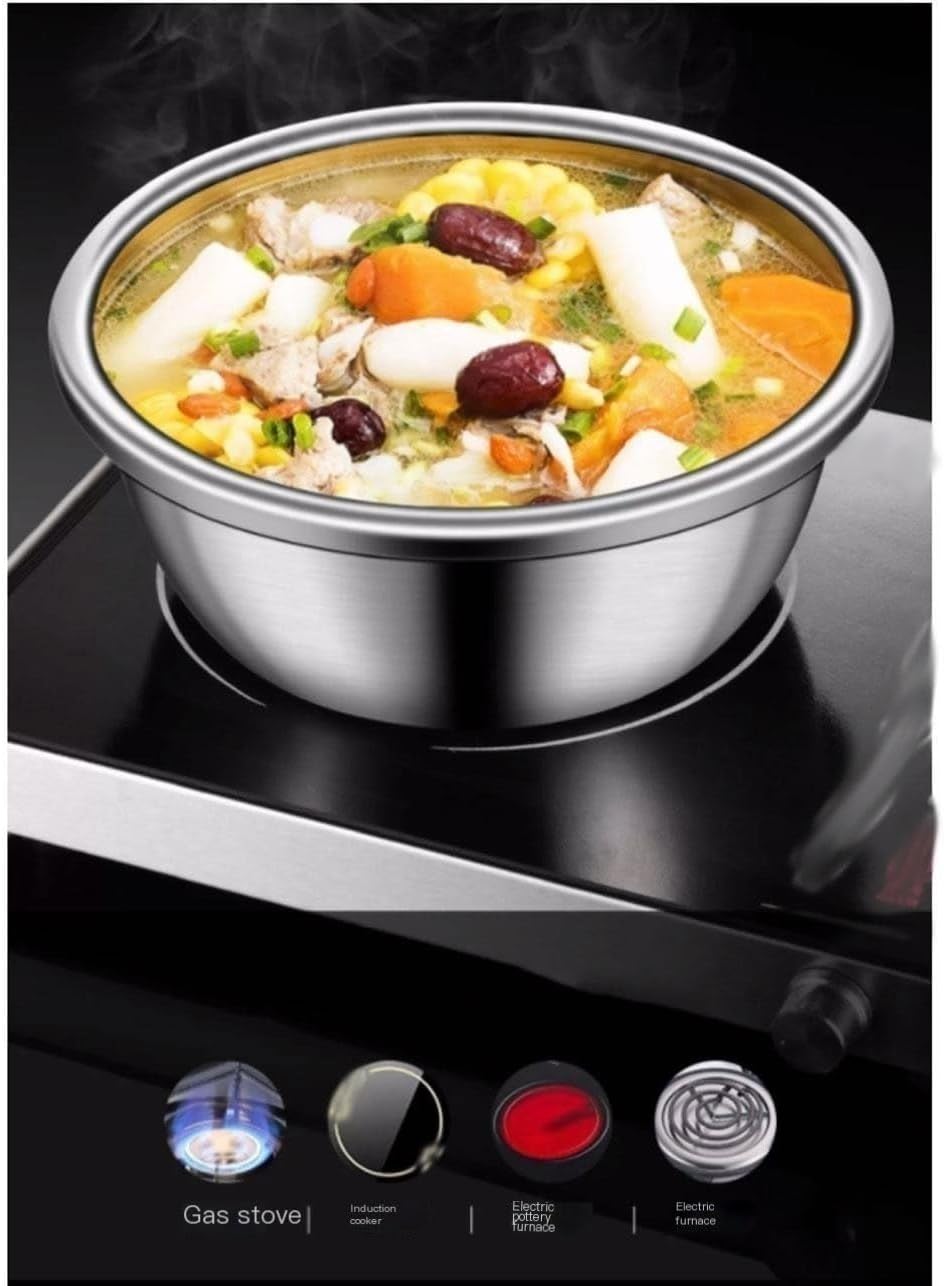 Products Name: Serving Trays Pots and Pans Mixing Bowls Soup Bowls Nesting Bowls Baking Cooking 304 Stainless Steel 4 Piece Sets Outdoor Picnics Cookware Applicable: Induction cooker, gas stove, electric ceramic stove, electric heating stove, Heated Cooking Food. Material: 304 Stainless Steel. Pots and Bowls Size: Specification 28cm, outer diameter 28cm, height 11.5cm. Specification 30cm, outer diameter 30cm, height 12.5cm. Specification 32cm, outer diameter 32cm, height 13.0cm. Specification 34cm, outer diameter 34cm, height 13.5cm. Package Includes Stainless Steel Mixing Bowls * 4