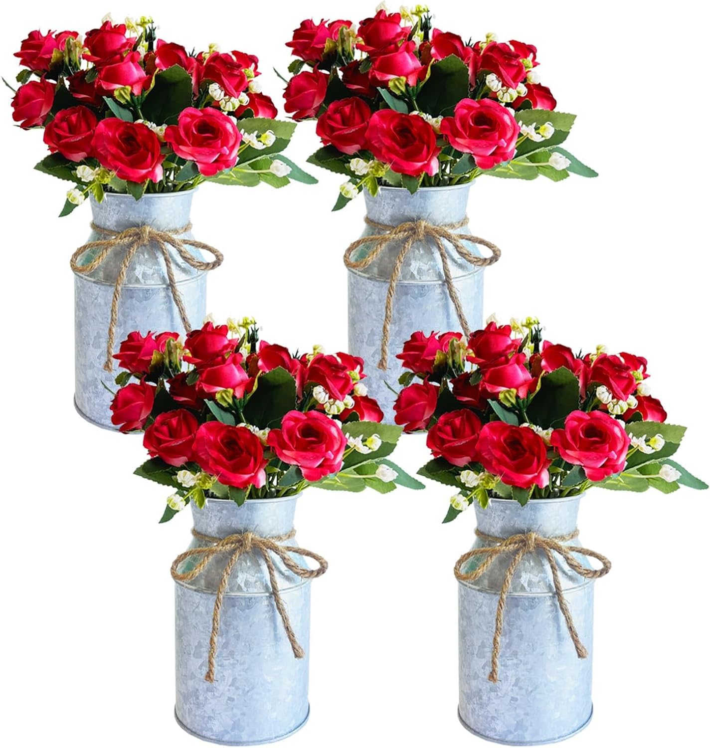 | Color | 6 Silver Vases & 12 Red Roses |