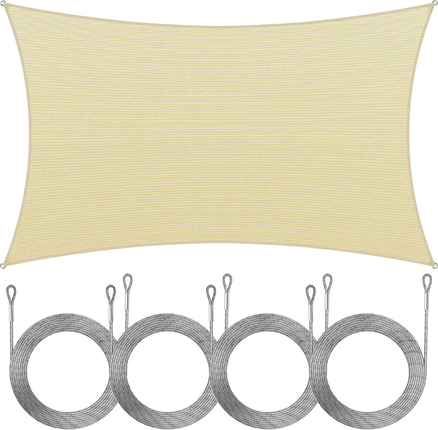 Include : ShadeMart 14' x 20' Beige Sun Shade Sail Rectangle Canopy Fabric Cloth Screen Water Permeable & UV Resistant, Heavy Duty, Carport Patio Outdoor ShadeMart 12 Feet Stainless Steel Wire Cable Rope Cable 4 PCS Set for Rectangle Or Square Sun Shade Sail Cannopy Installation (Cables Only)
