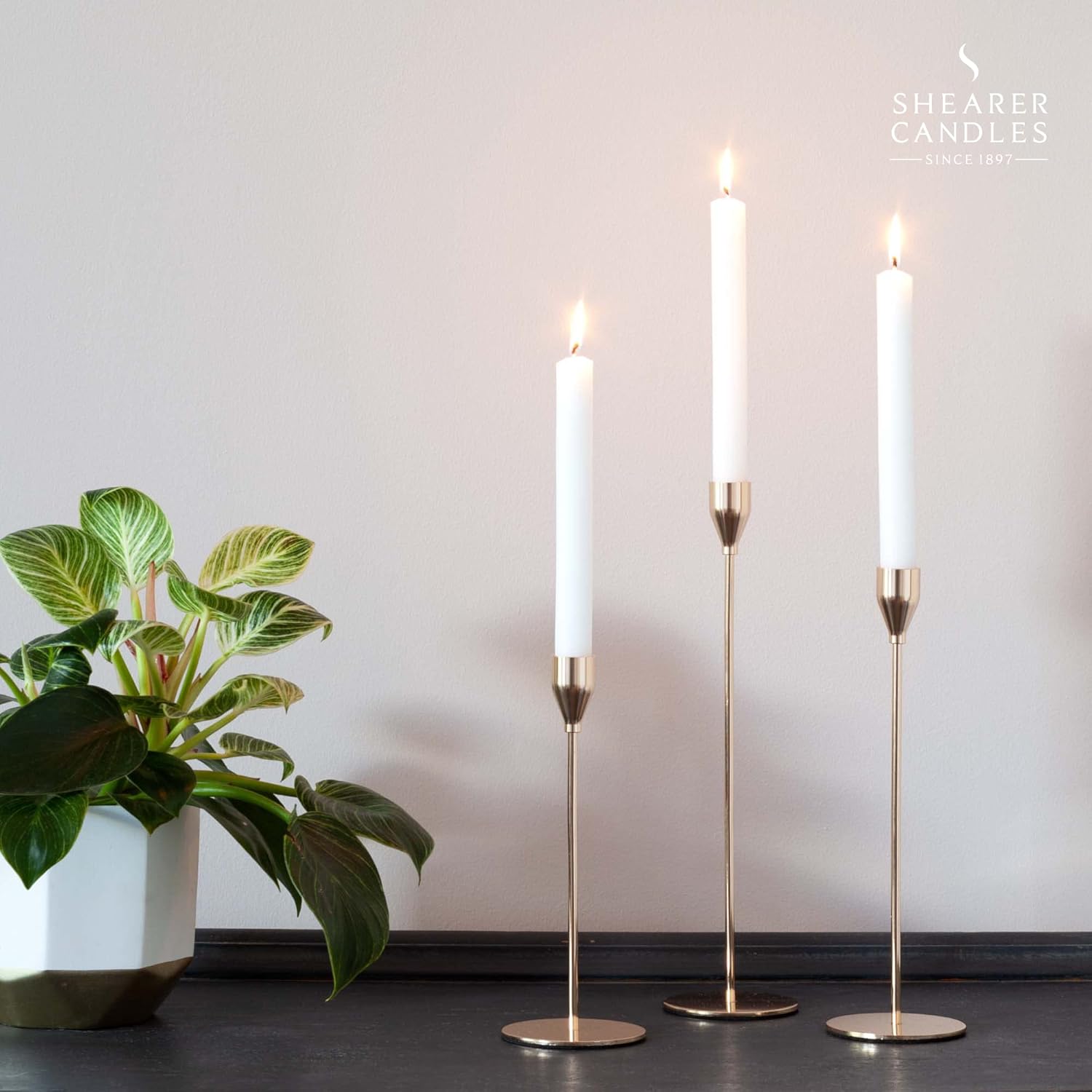 White 8 inch rustic dining candles in a box of 20 that will burn for 8 hours long. These hand-drawn rustic candles are ideal for your table arrangements. Part of the Rustic Dining Candles Collection - 8 inch hand-drawn rustic candles in packs of twenty. Our rustic candles are available in a wide variety of colours from Classic Ivory to Vibrant Red. The perfect finishing touch for every event or interior. Manufactured and designed in the UK by Shearer Candles. Founded in 1897 on the outskirts of Glasgow, Shearer Candles is the UK's longest established lifestyle candle company. Shearer Candles prides itself on delivering high quality candles that contain only the finest ingredients. Taking an average of six months from drawing board to first flame, we don't rush things. Each candle has its own recipe that takes into account the reactions between shapes, waxes & scents.