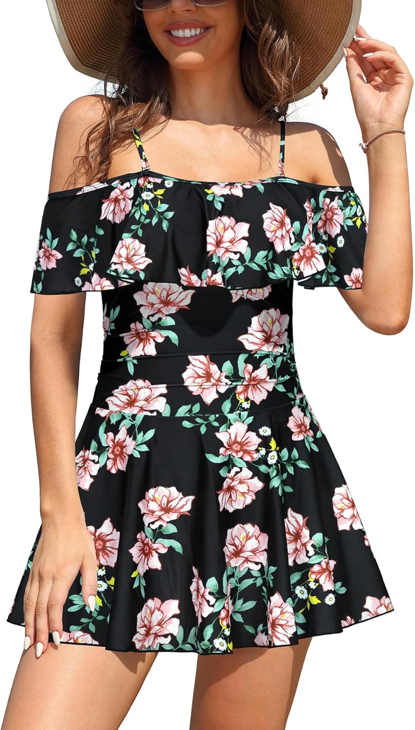 | Style Name | Off-shoulder Ruffled Flounce One-piece Swimdress With Skirt |