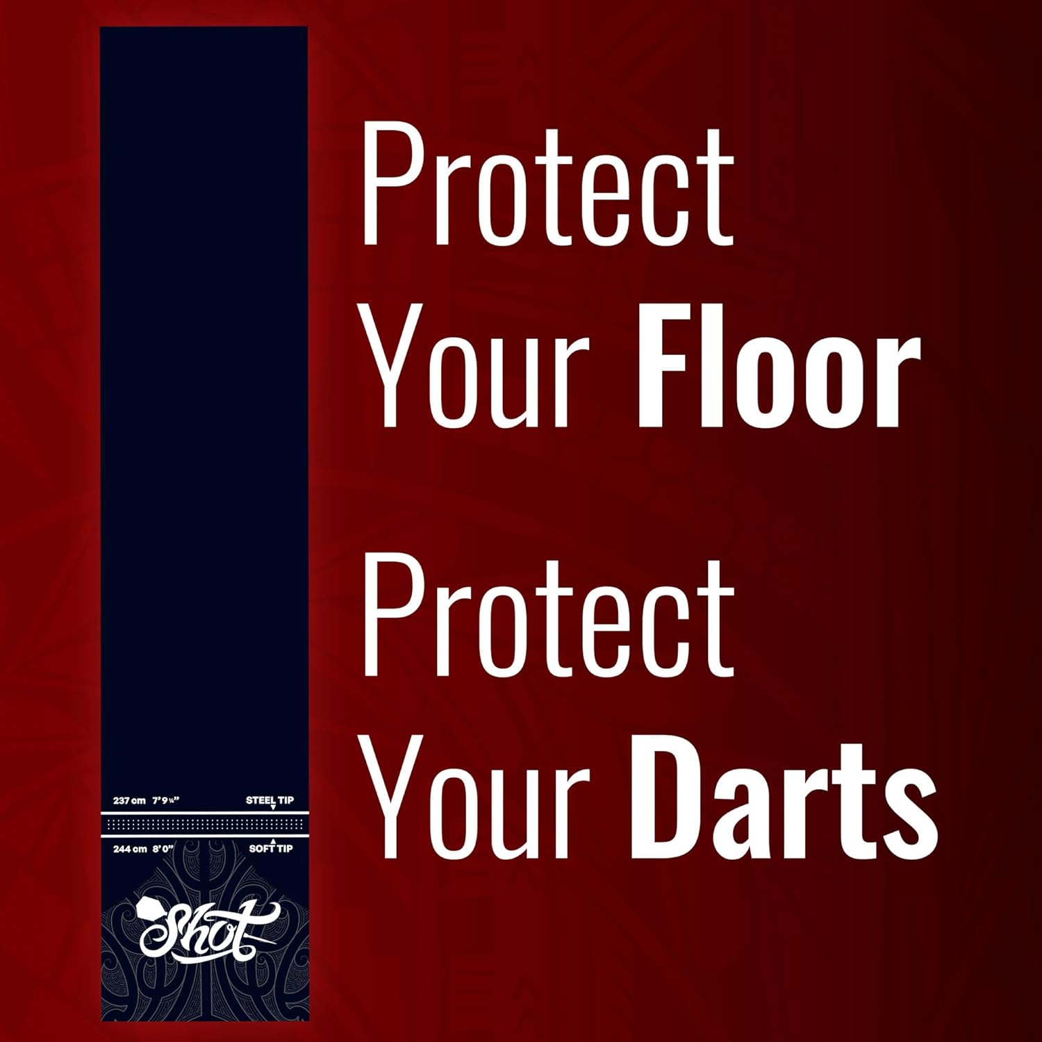 | Included Components | Shot Rubber 300x62 cm Dart Mat |