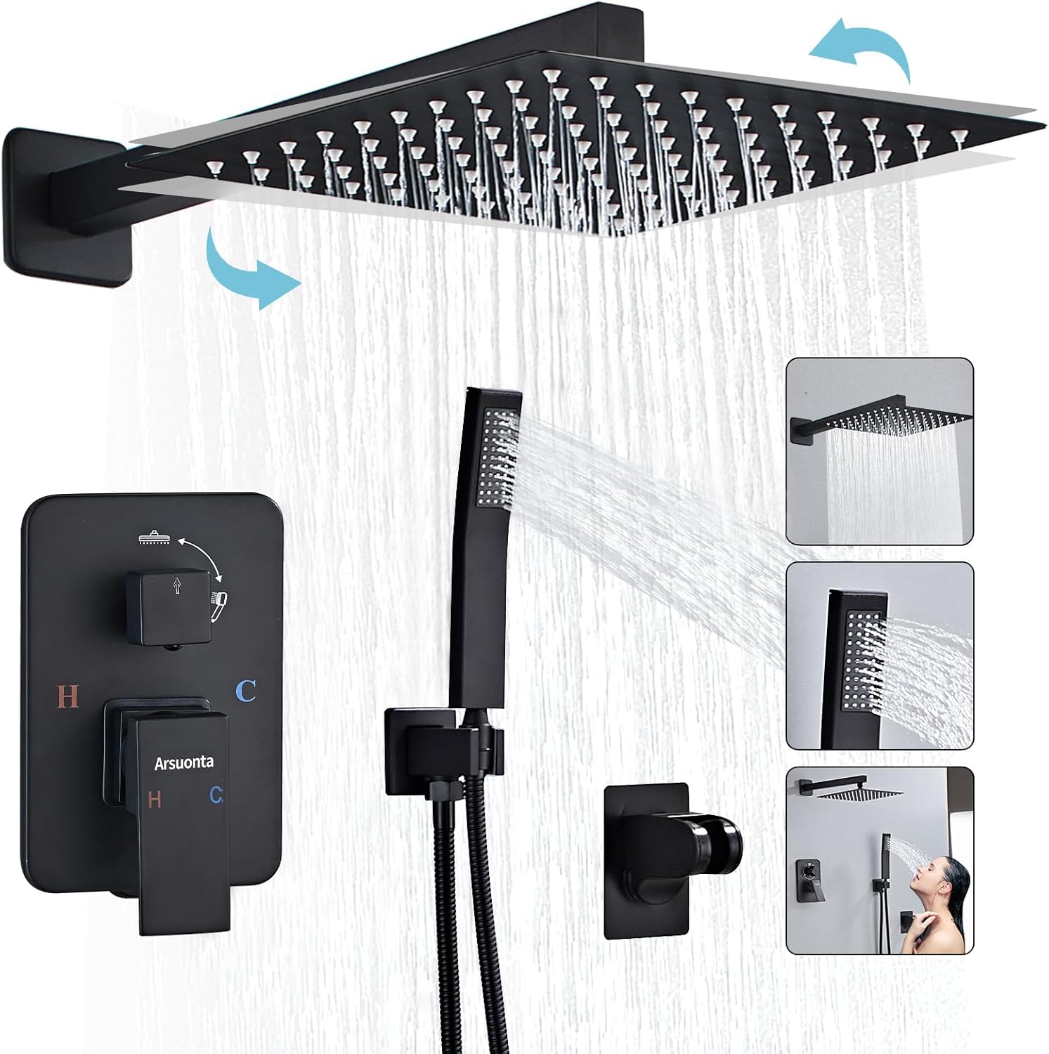 | Included Components | 10 inch square shower nozzle, a handheld spray, a shower rack, a control valve, a shower arm, a shower hose, all installation hardware |