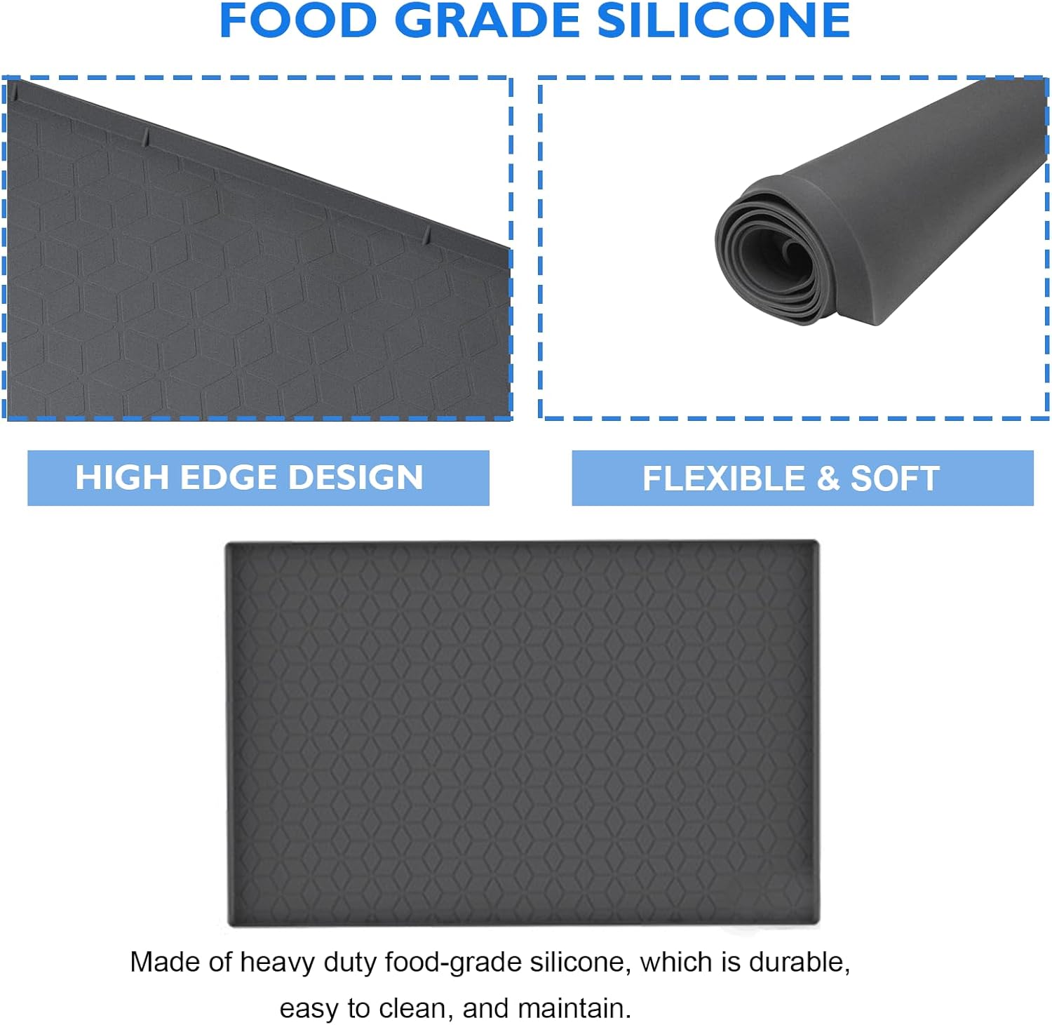 Silicone Under Sink Mat - Under Sink Liner 34" X 22" for Kitchen Bathroom Waterproof - Cabinet Protector Mat Laundry Room with Raised Edge Design (Dark Grey)